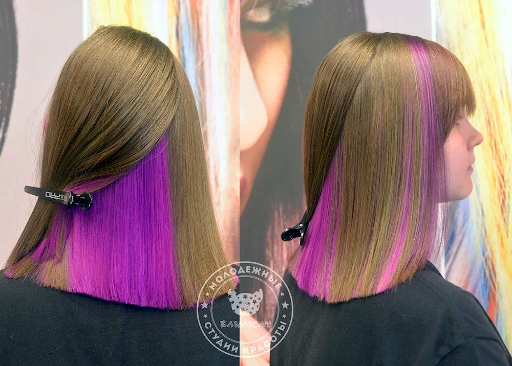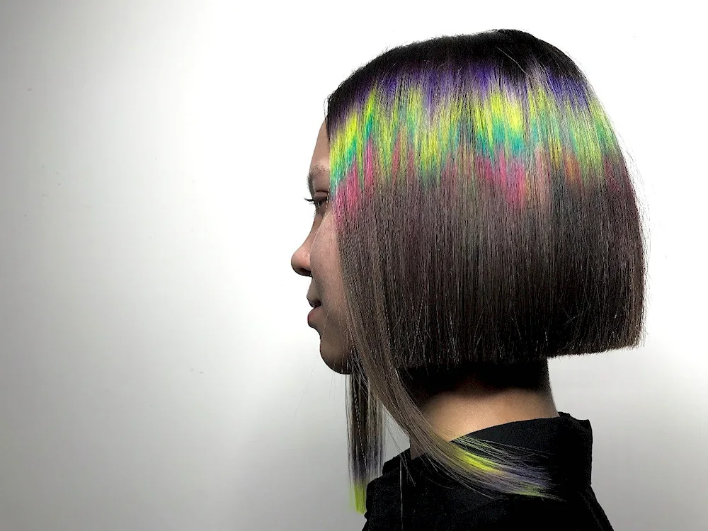Bob with Secret Coloring: Check out these stunning photos of hidden colors peeking out from underneath a bob haircut. The subtle pops of color add a playful and unique touch to the classic hairstyle.