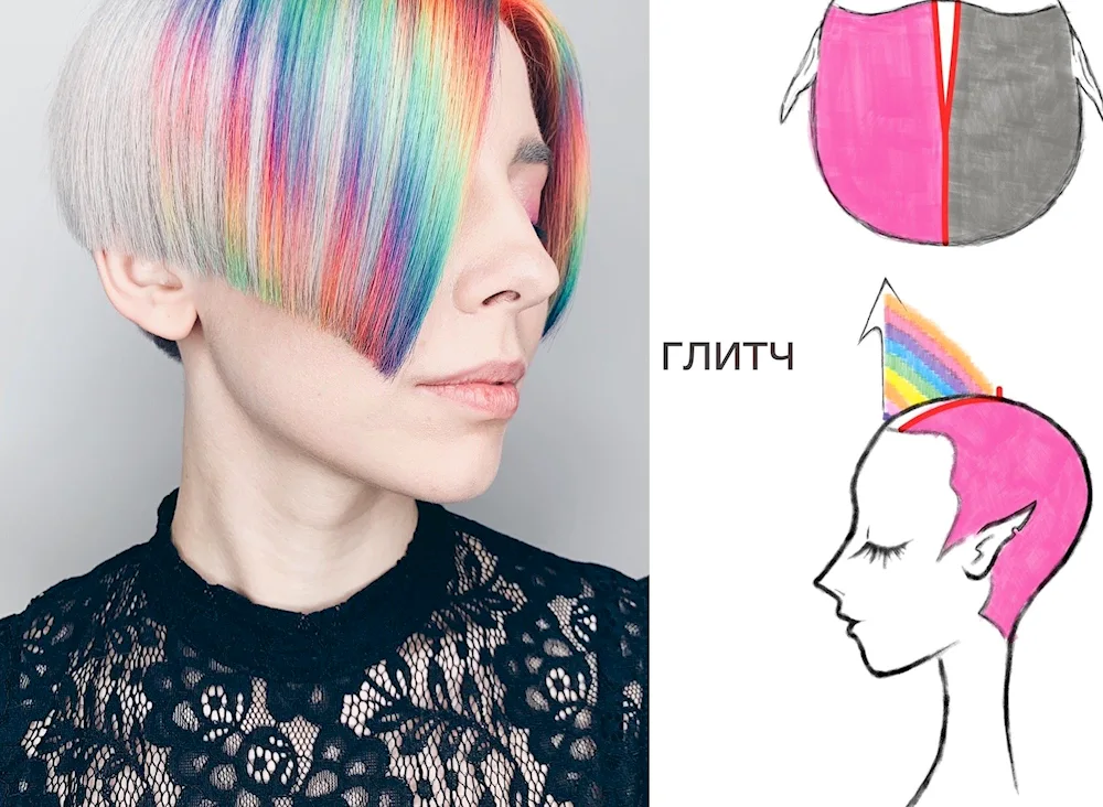 Coloured highlights on short hair