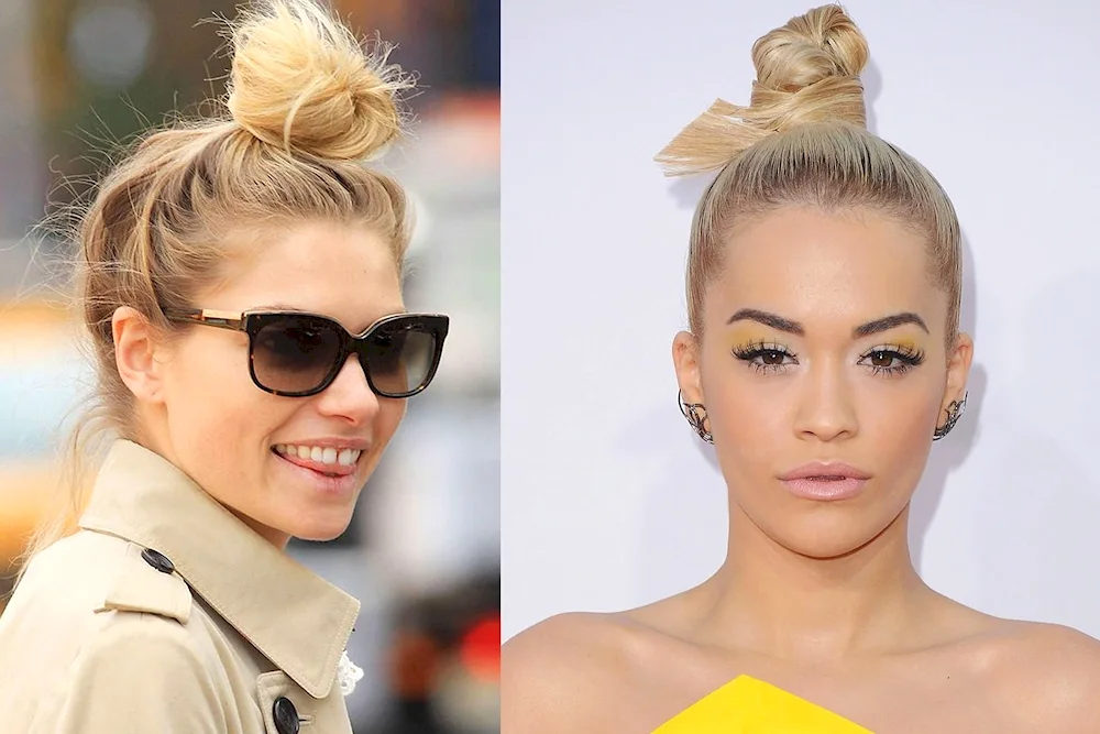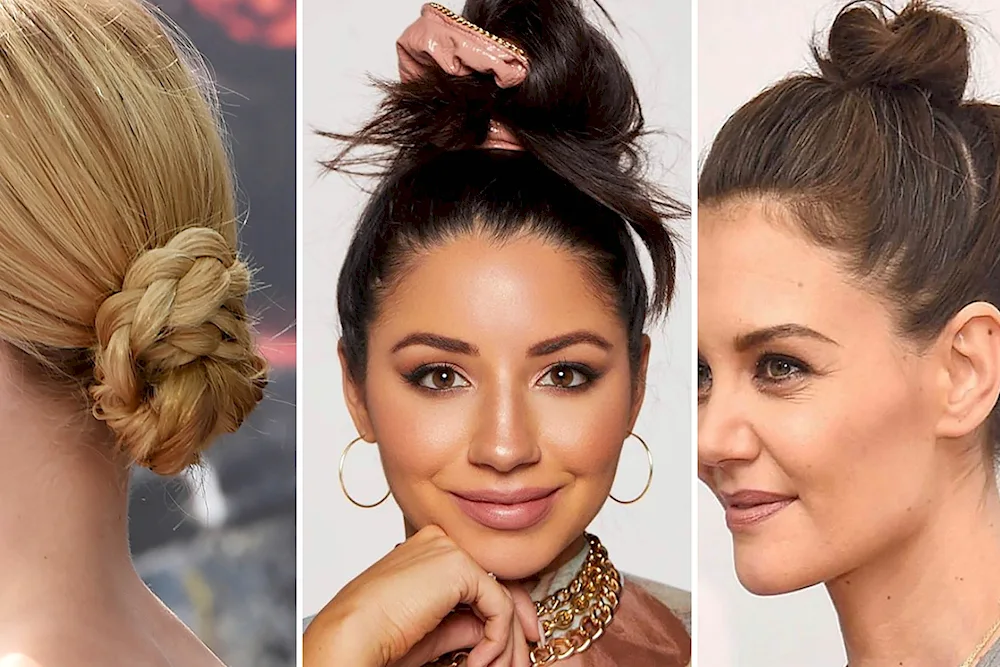High bun hairstyle  Check out these stunning photos of different high bun hairstyles! From sleek and polished to messy and effortless, there's a style here for everyone to try. Get inspired and rock your own high bun with confidence!
