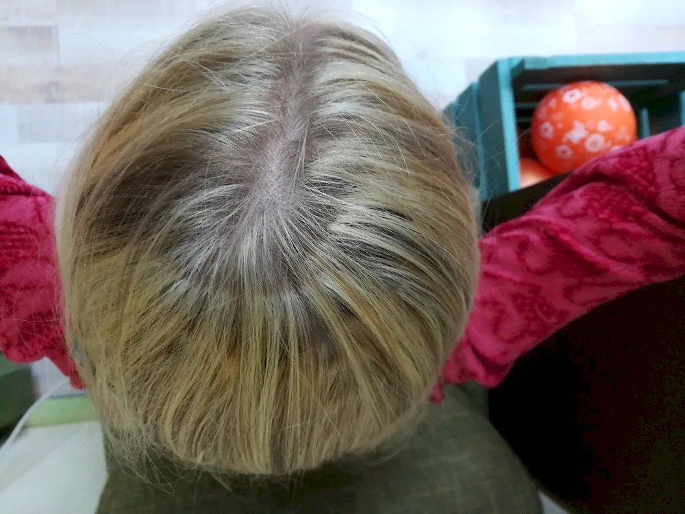 Highlighting on regrown roots of bleached hair Images showcasing newly-grown roots on bleached hair are a great way to demonstrate the regrowth process after a fresh dye job. The highlighted roots provide a striking contrast against the lighter strands, giving a unique peek into the maintenance of color-treated hair.