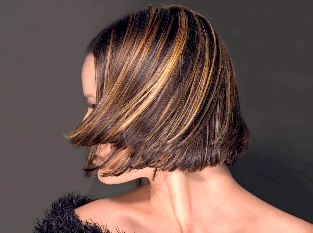 Check out these stunning images showcasing highlights on dark short hair! You'll love the way the color adds depth and dimension to each hairstyle.