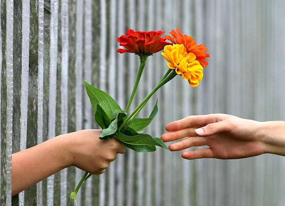 I give flowers Beautiful bouquets of flowers being lovingly handed to friends and family, brightening their day with colorful blooms. A variety of delicate floral arrangements being gifted to loved ones to show appreciation and love.