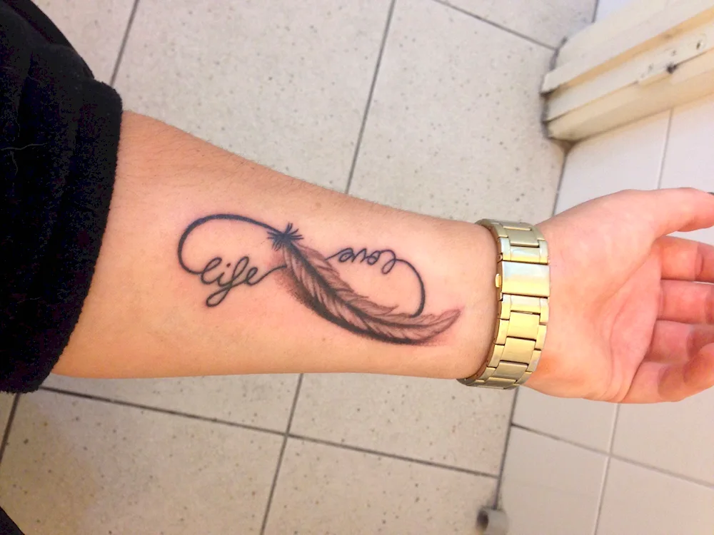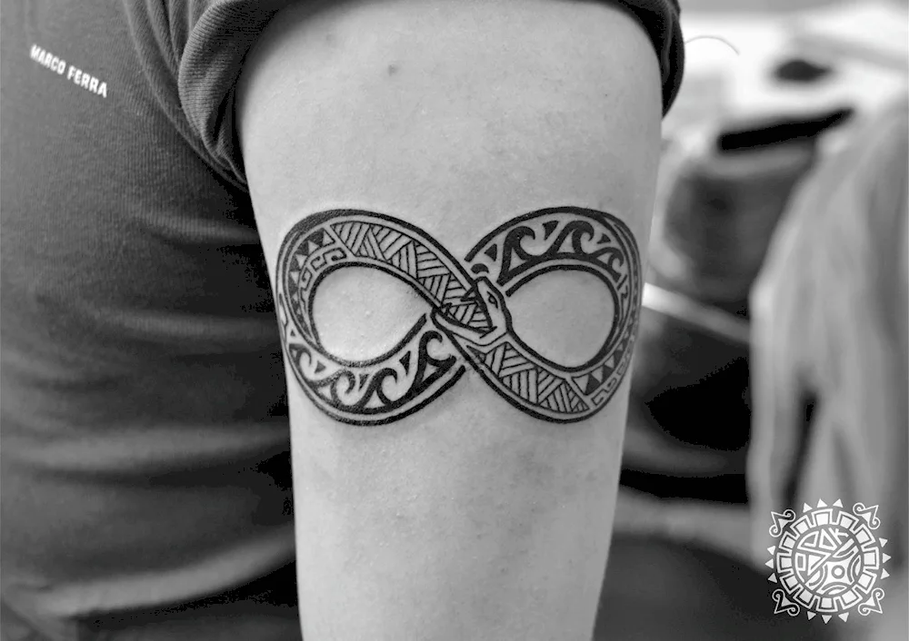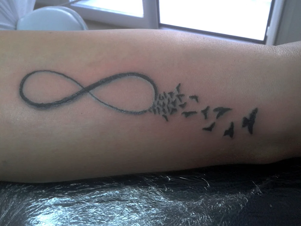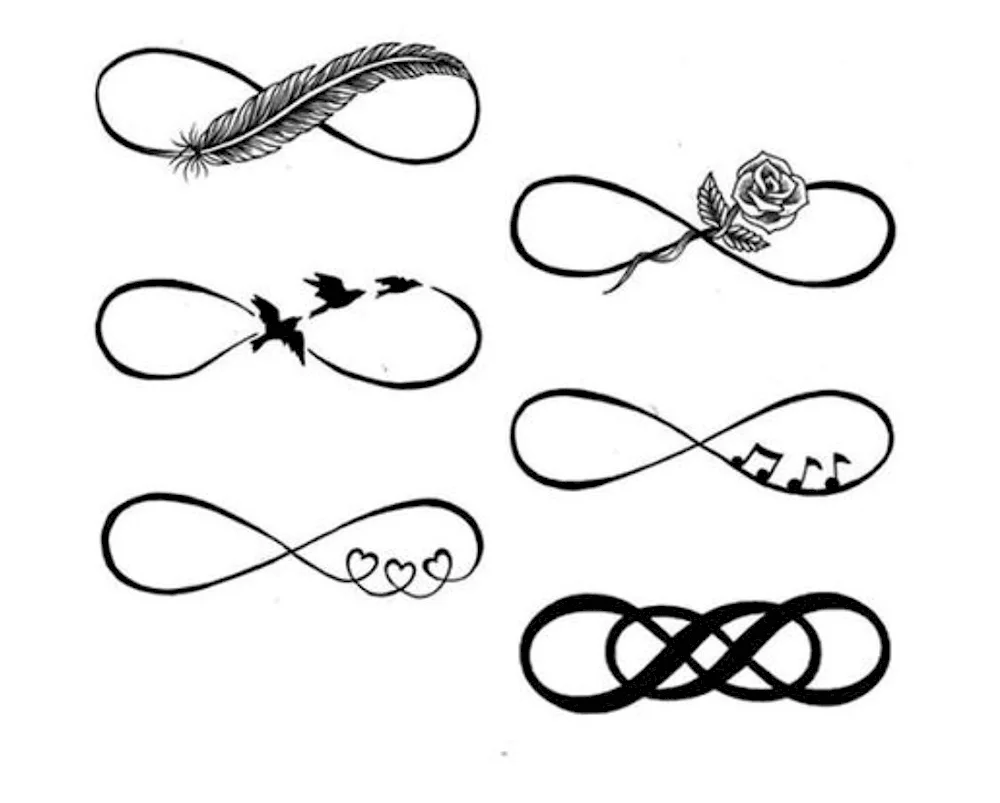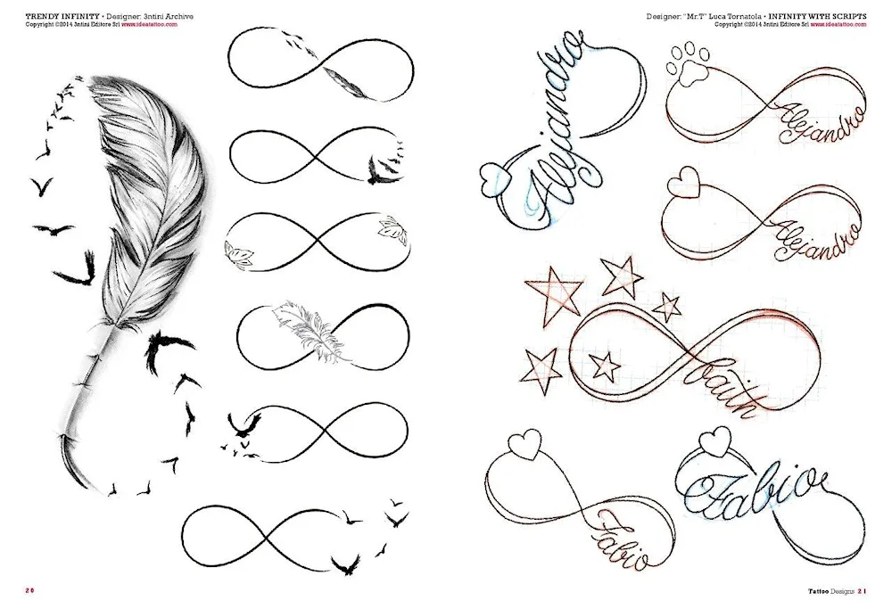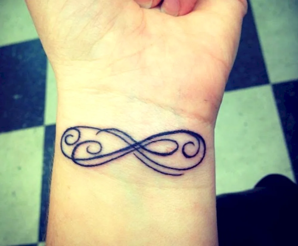 Check out these cool infinity symbol tattoo designs - some with intricate patterns and others with delicate script writing. You can find inspiration for your own unique infinity tattoo from these photos and images.
