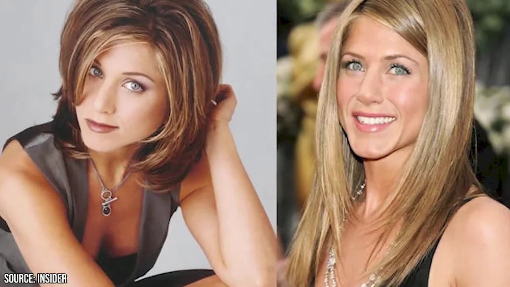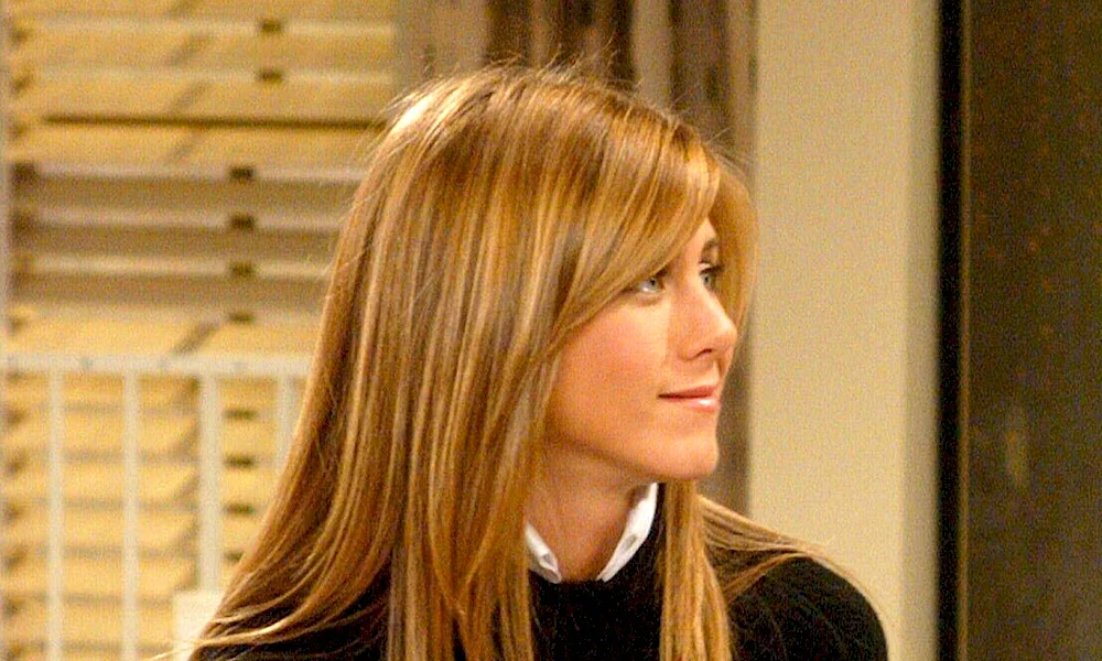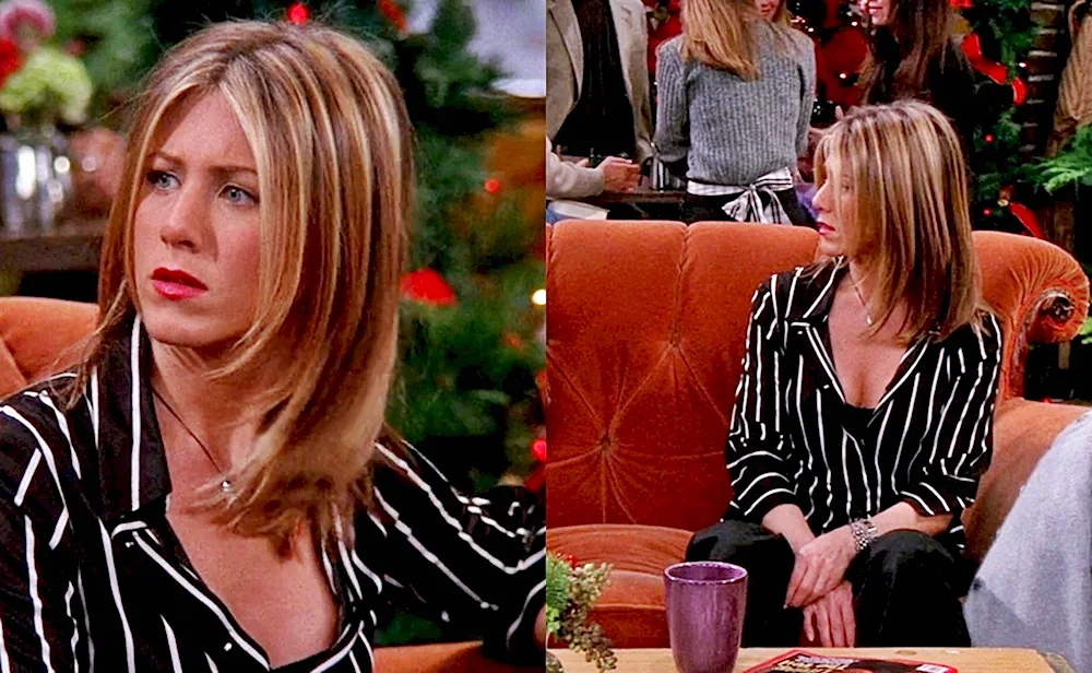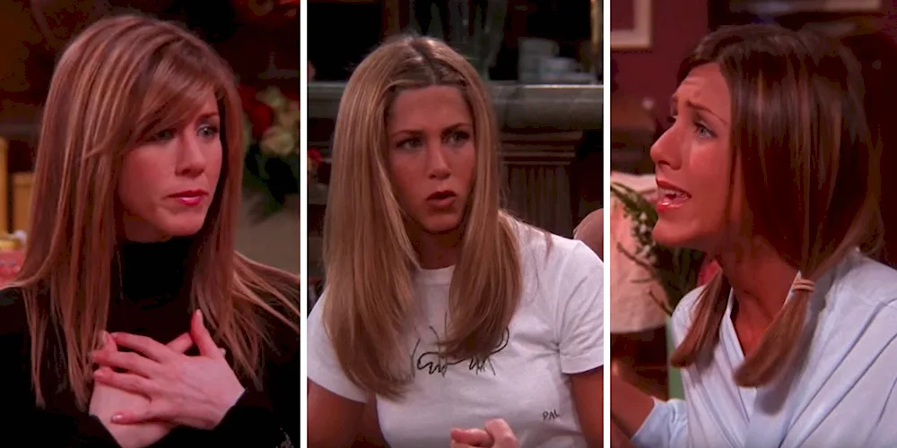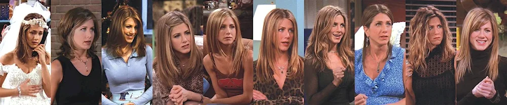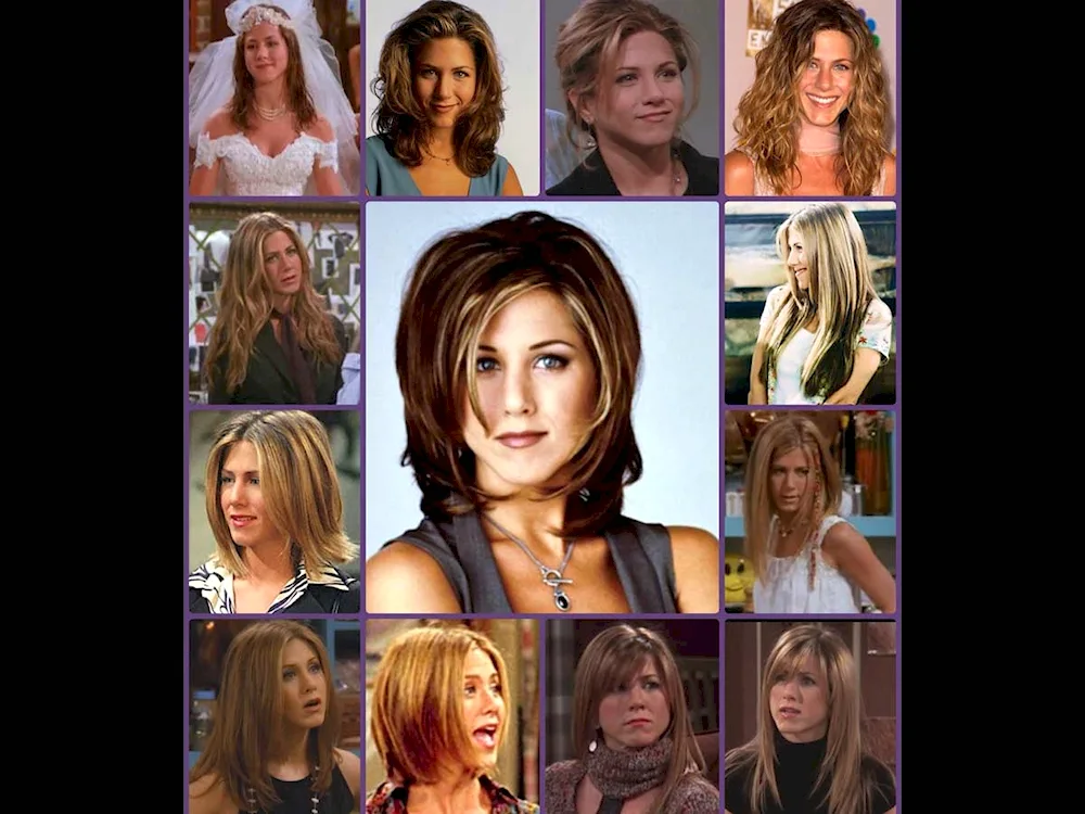 Check out these pictures of Jennifer Aniston's iconic hairstyle from the TV show Friends. You can see her signature layered haircut and face-framing highlights in these images.