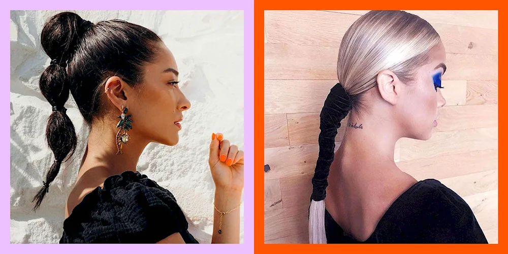 Collection of photos showcasing various styles and designs of synthetic Kanekalon ponytails - perfect for adding volume and length to your hair effortlessly. Explore different colors and textures to find the perfect look for any occasion.
