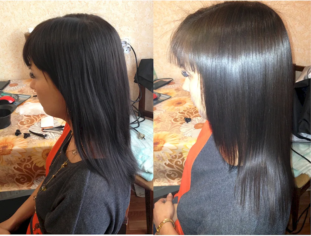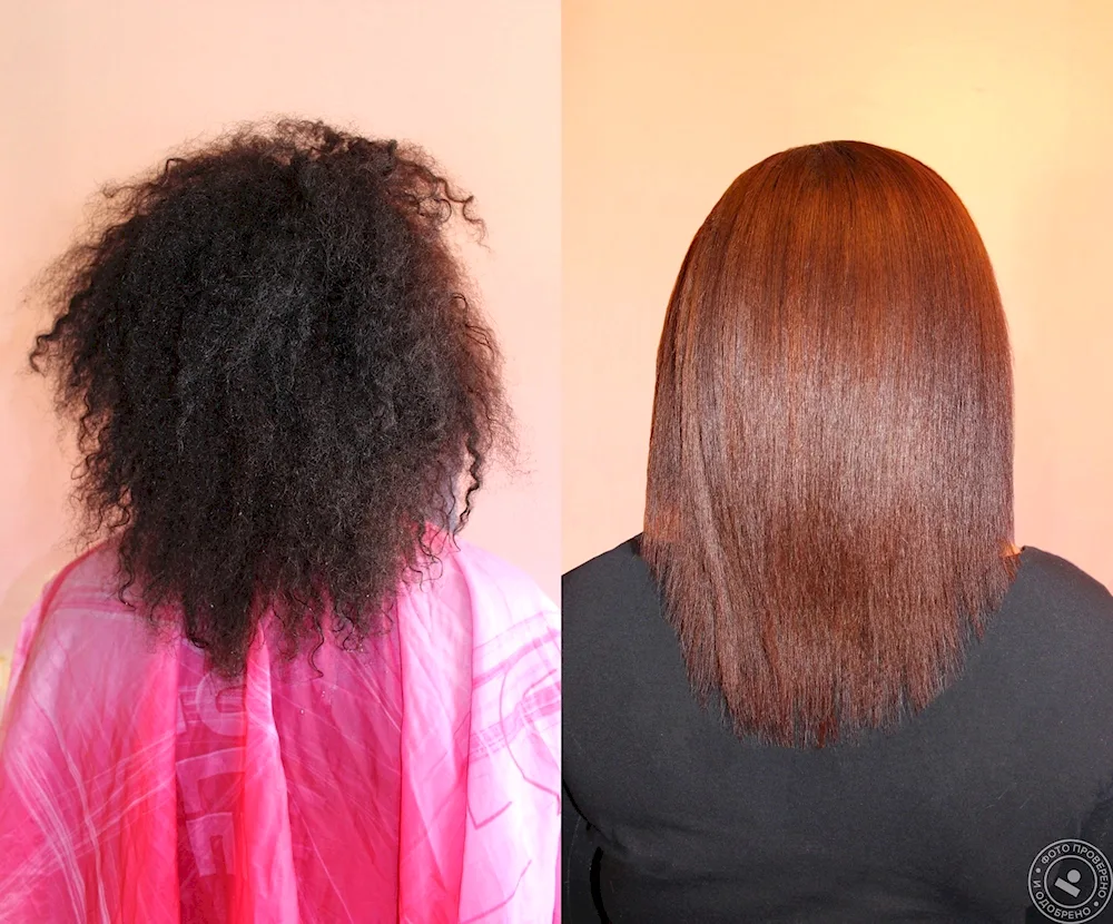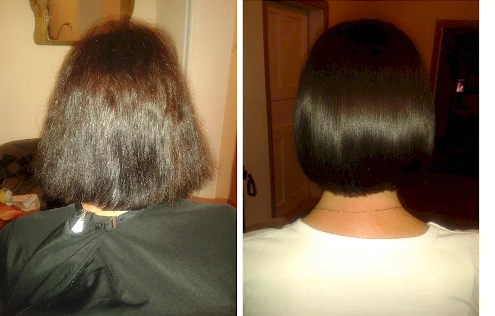 Check out these photos of a sleek bob with keratin hair straightening for a glossy, smooth finish. You can see the transformation from frizzy to straight in just a few images.