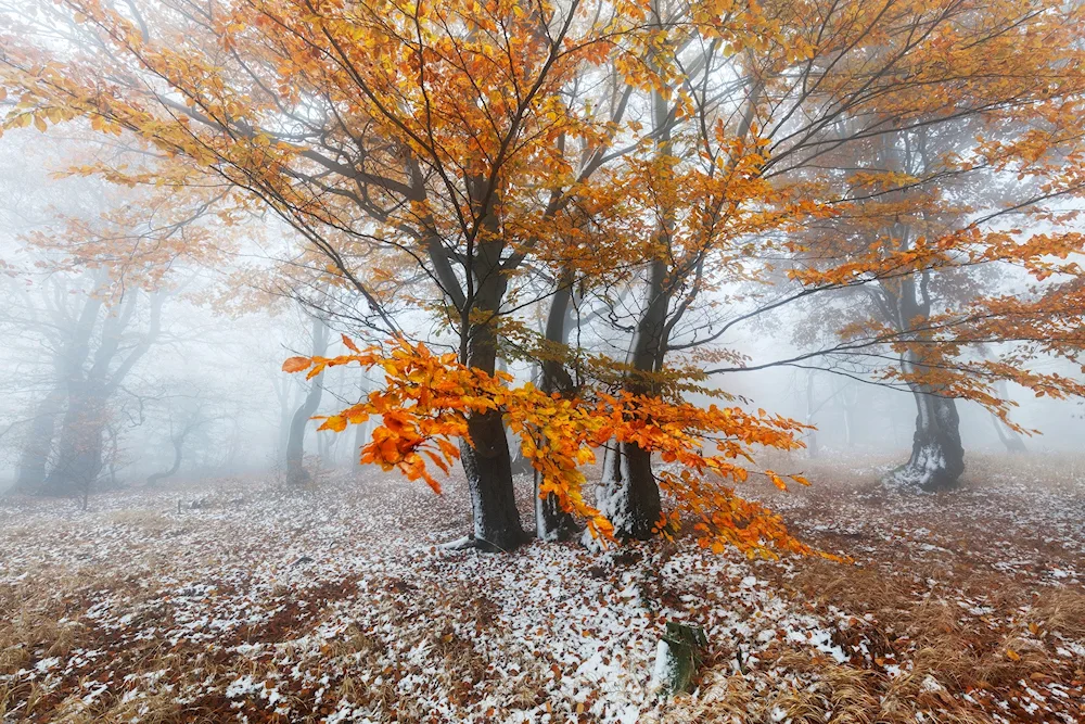 Selection of photos capturing the beauty of the late autumn season, showcasing golden leaves falling from trees, misty mornings in the countryside, and scenic landscapes covered in a blanket of orange and red foliage. Experience the cozy and nostalgic feel of late autumn through these images, perfect for anyone who loves the tranquil vibes of this time of year.