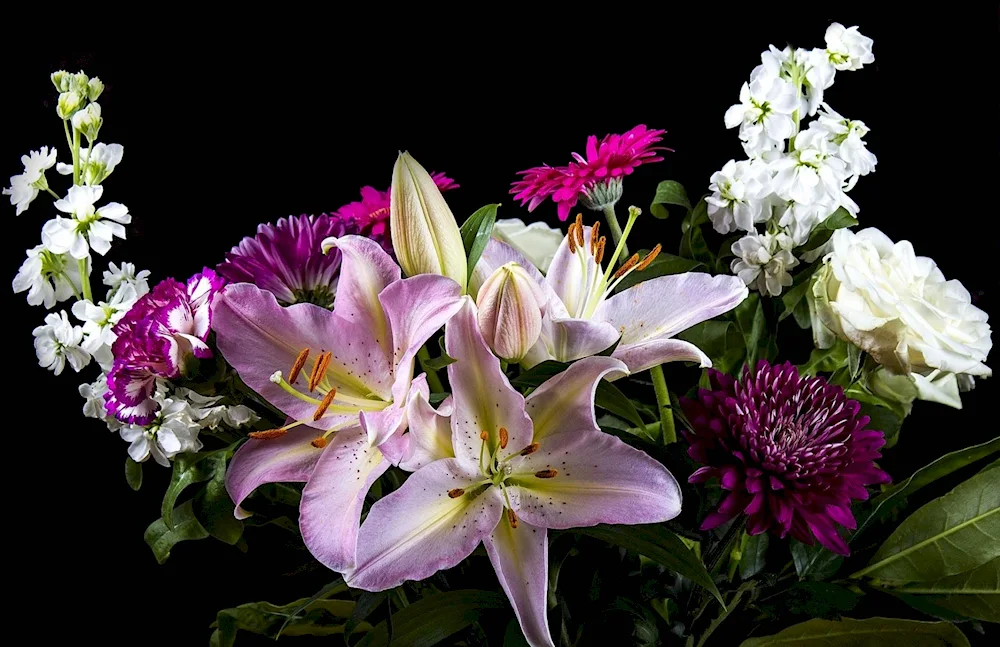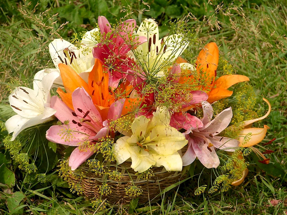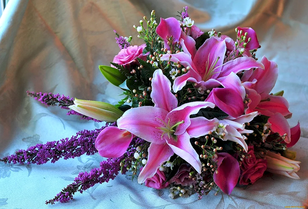 Lily bouquet Check out these gorgeous bouquets of lilies in various colors and arrangements. The vibrant hues and delicate petals make for a stunning addition to any special occasion or home decor.