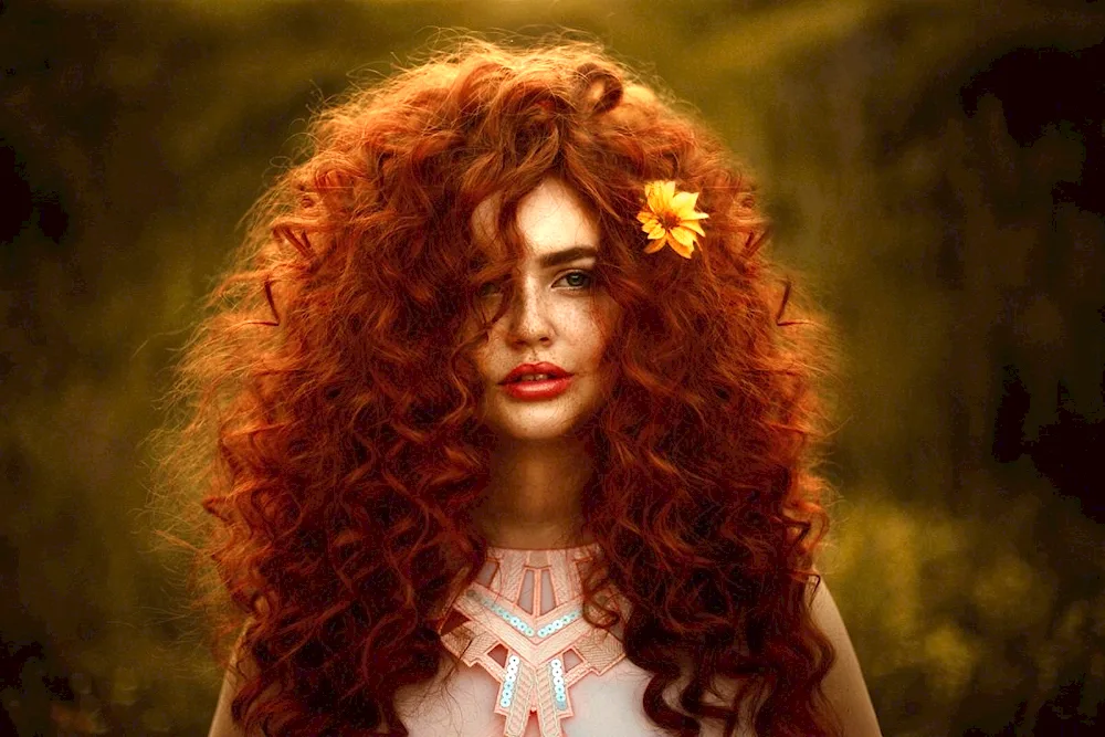 Collection of images showcasing beautiful long red curls - from vibrant fiery red to deep crimson hues, each picture captures the stunning movement and texture of the hair. These photos will inspire you to embrace and showcase your own natural red curls with confidence and style.