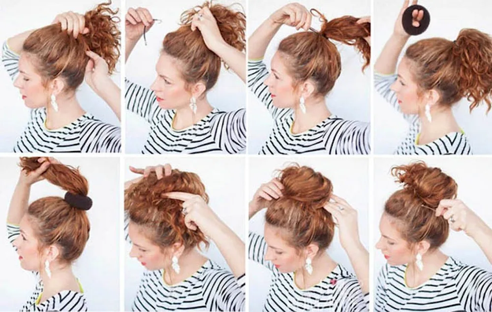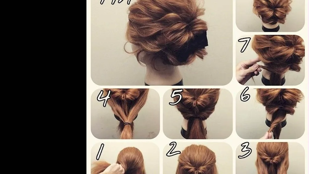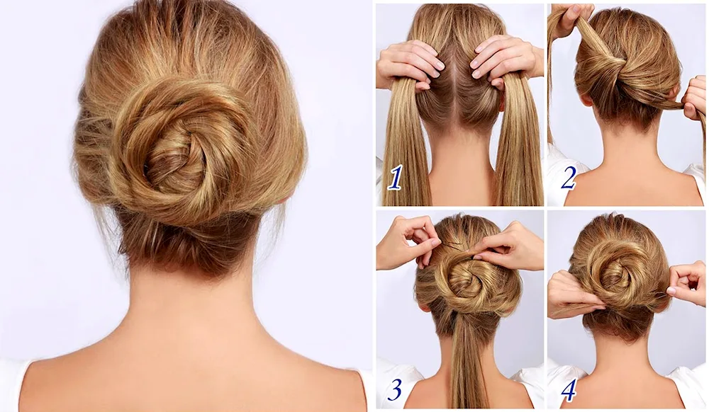 Instructions on creating a low bun hairstyle for medium hair. Step-by-step photos show how to achieve the elegant look easily.