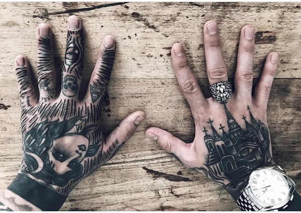 Check out these photos of unique tattoo designs for men's hands - from intricate geometric patterns to bold tribal symbols, there is something for every style. Whether you're looking for inspiration for your next tattoo or just appreciate the artistry, these images are sure to impress.