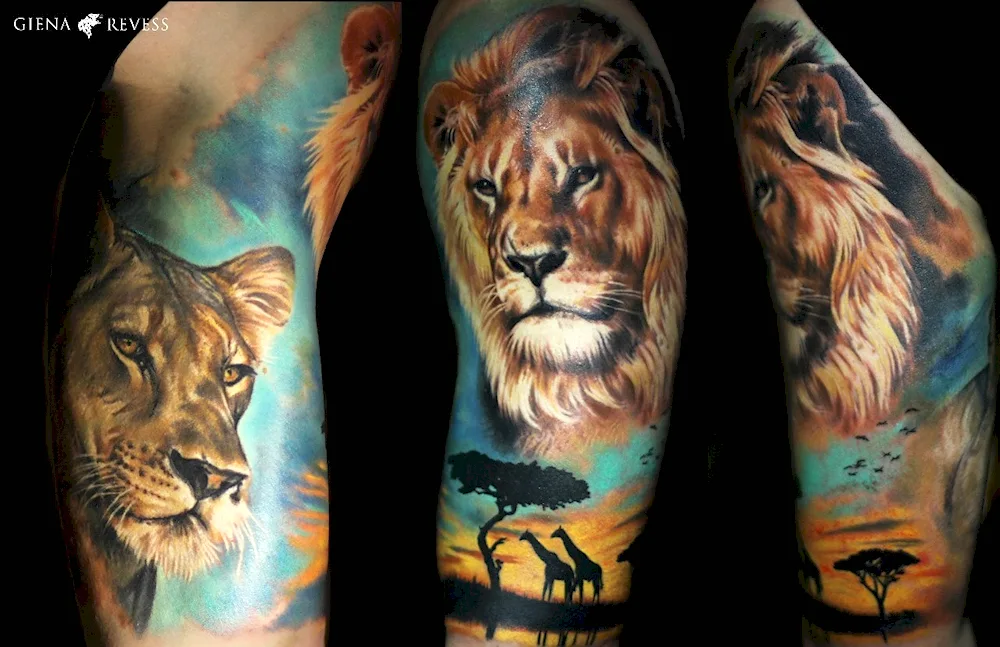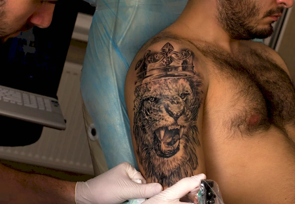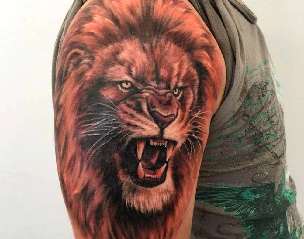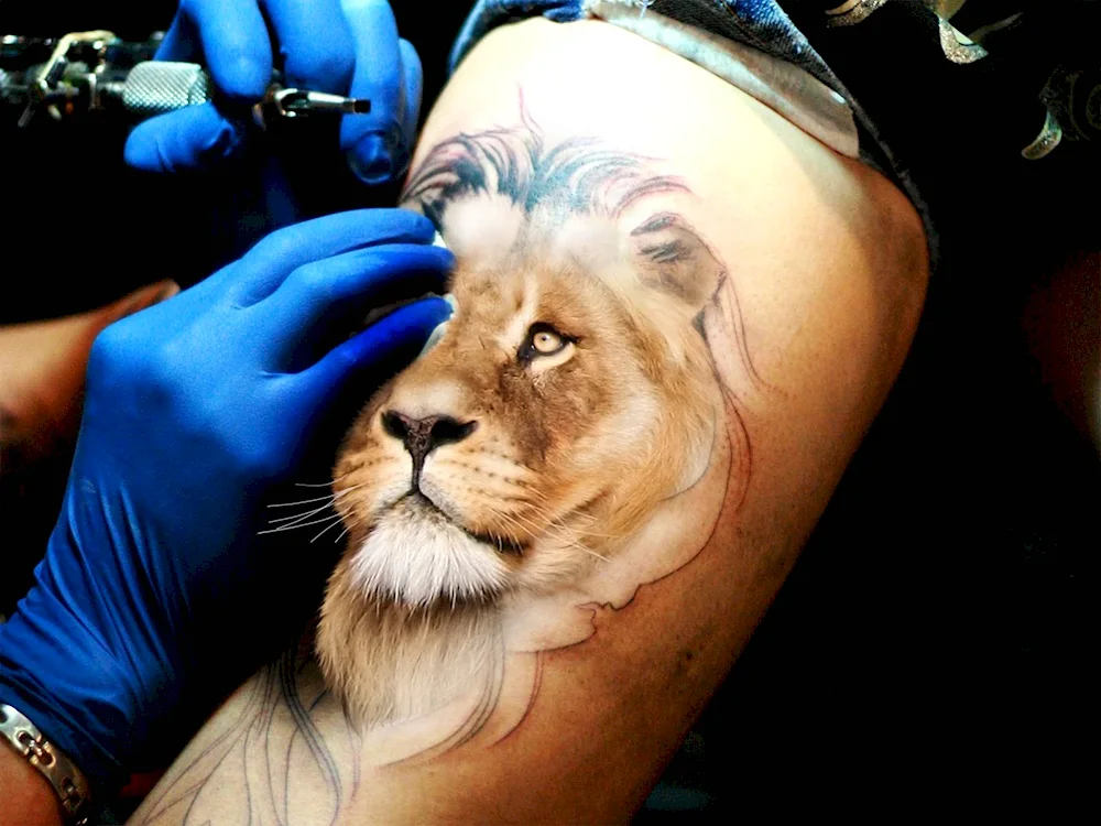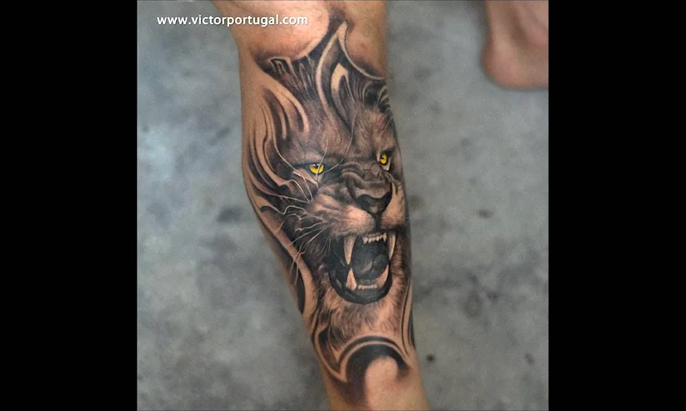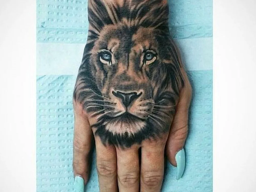 Images of men proudly showing off their lion tattoos on their hands, showcasing intricate designs and detailed artwork that symbolize strength and power. These tattoos are striking and bold, making a statement about the wearer's courage and resilience.