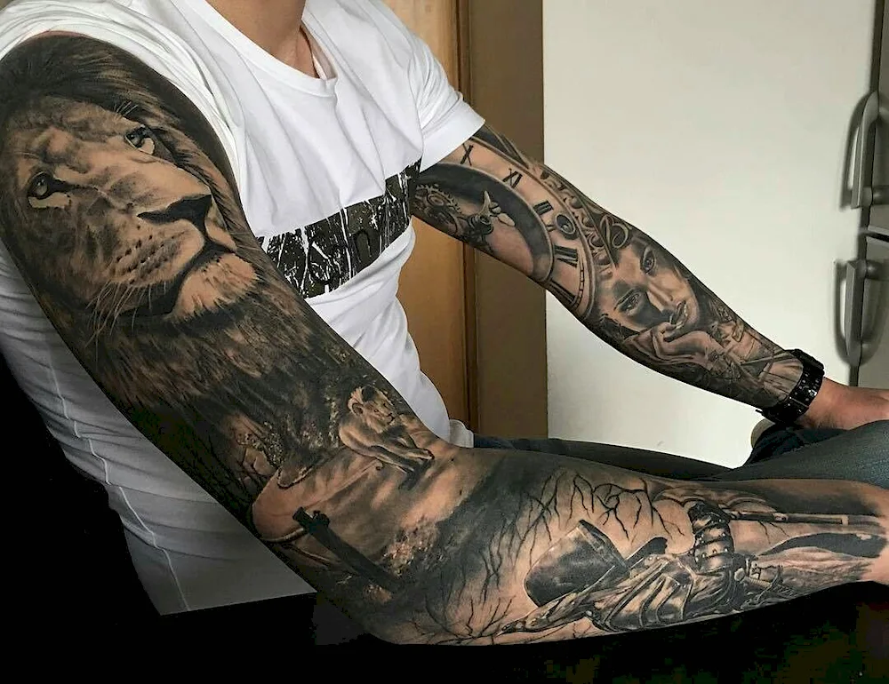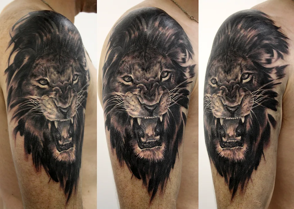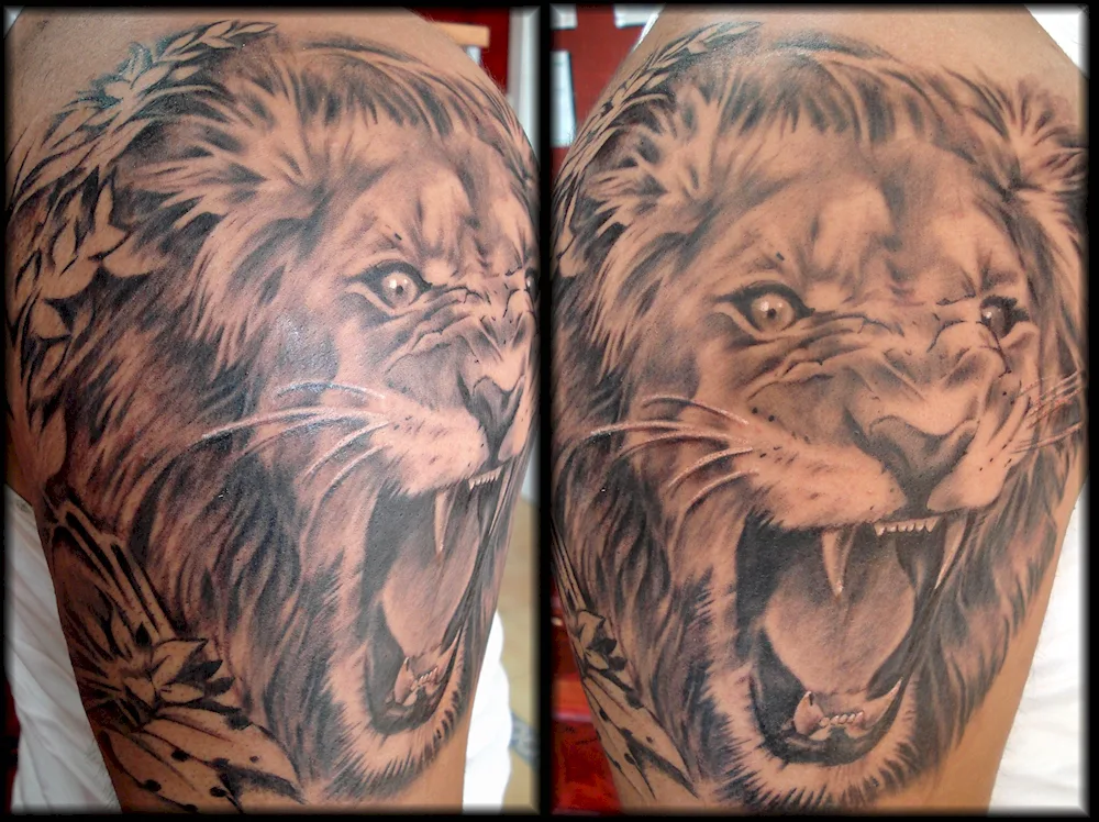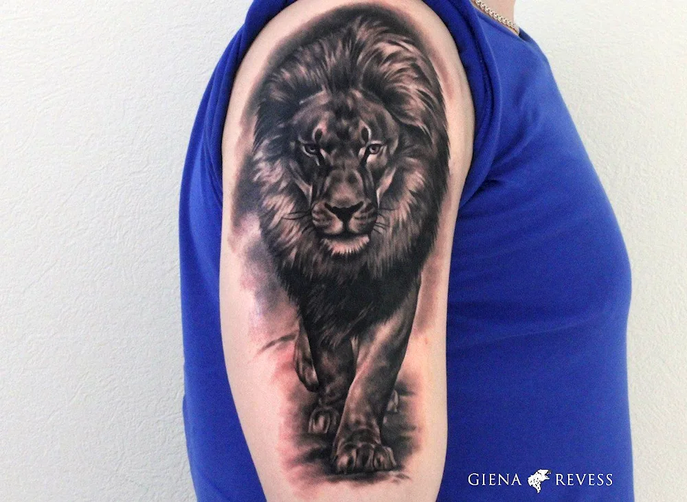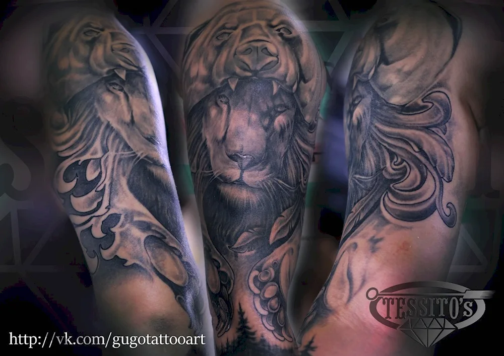 Images of men proudly showing off their lion tattoos on their hands, showcasing intricate designs and detailed artwork that symbolize strength and power. These tattoos are striking and bold, making a statement about the wearer's courage and resilience.