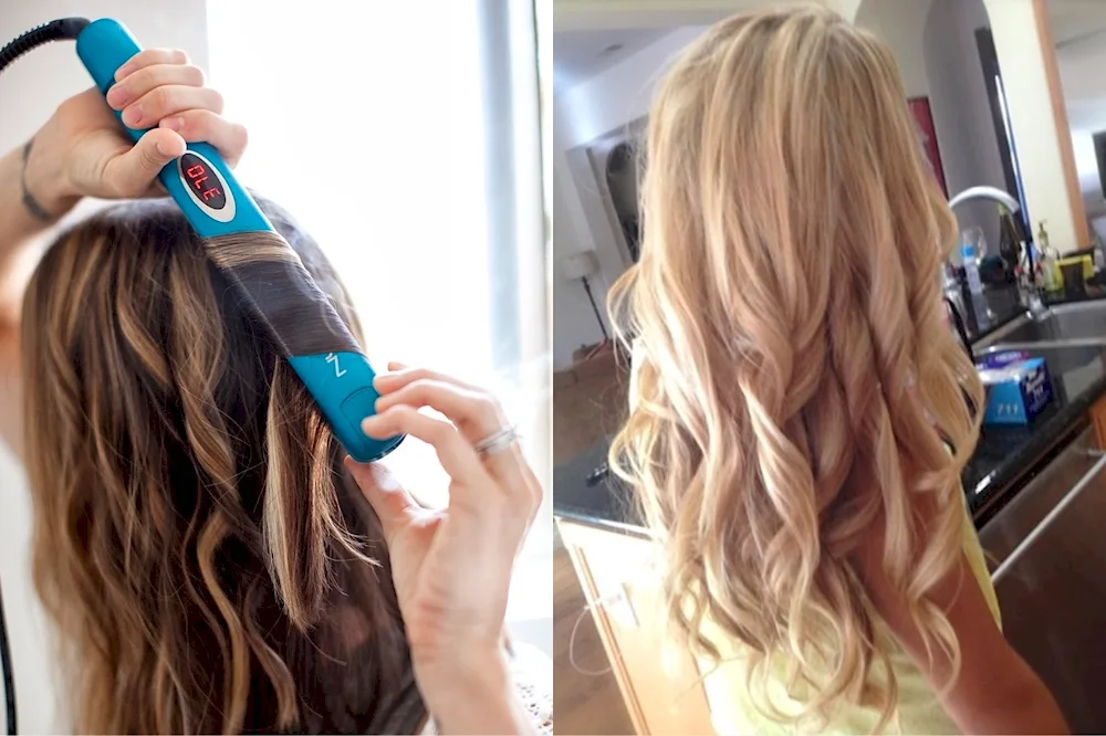 Long hair curls with a flat iron