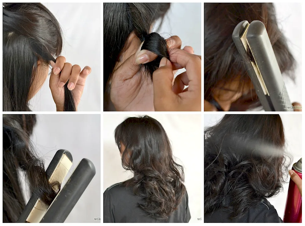 Curls with a flat iron for medium hair