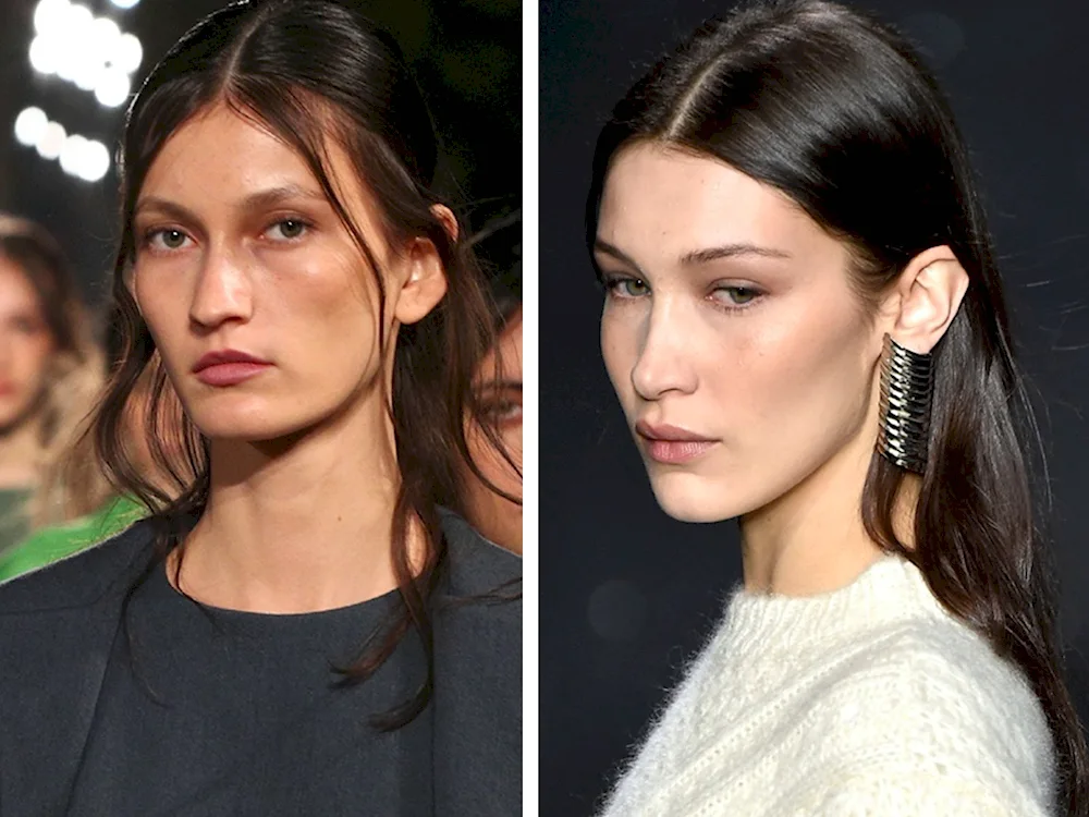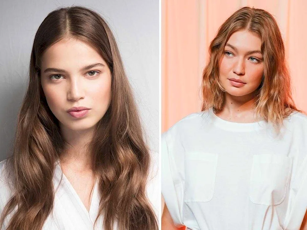 Middle parted hairstyles are showcased in these images, with styles ranging from sleek and polished to tousled and beachy. You can see different hair textures and lengths to find inspiration for your own middle parted look, whether you prefer a classic or modern style.
