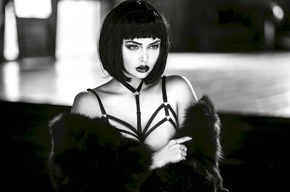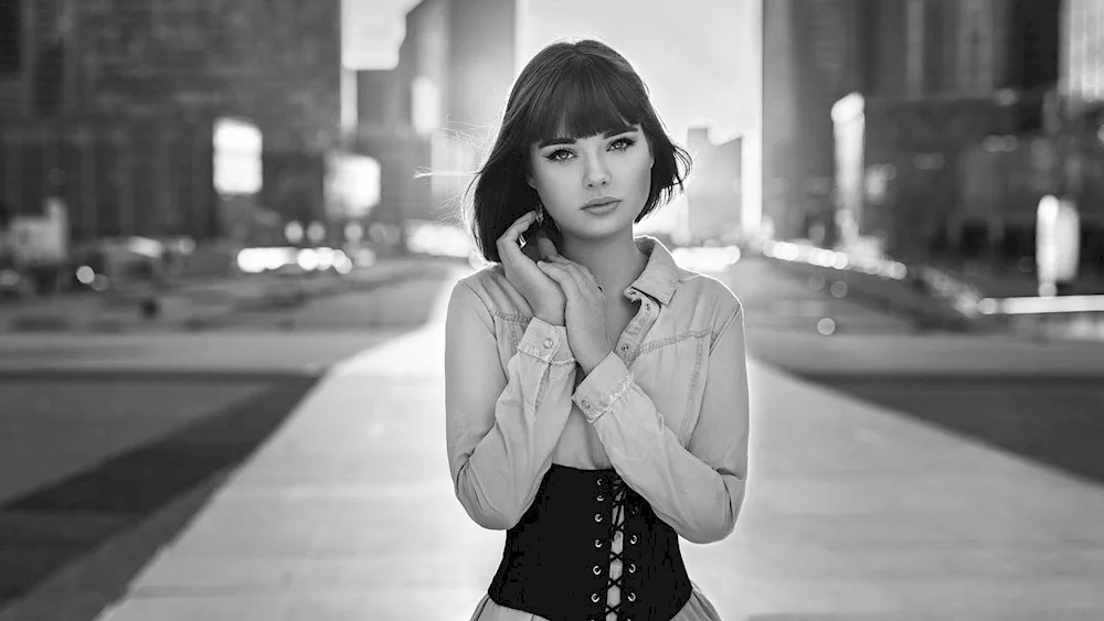 Model with a bob Photos of a stunning woman sporting a chic bob hairstyle, looking effortlessly stylish and modern. The model's haircut frames her face beautifully, accentuating her features and exuding confidence.