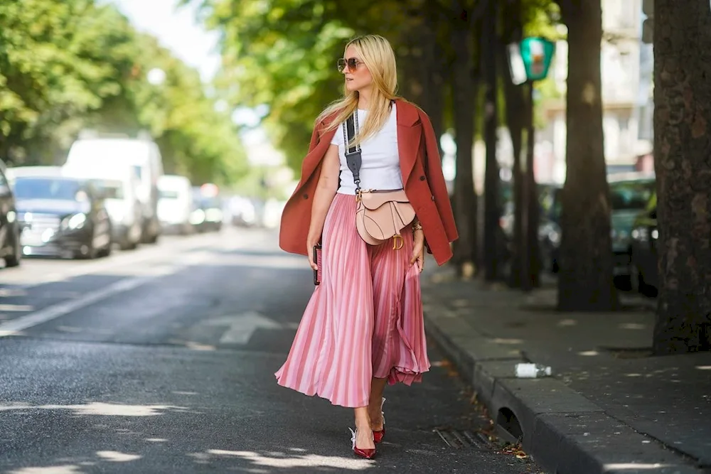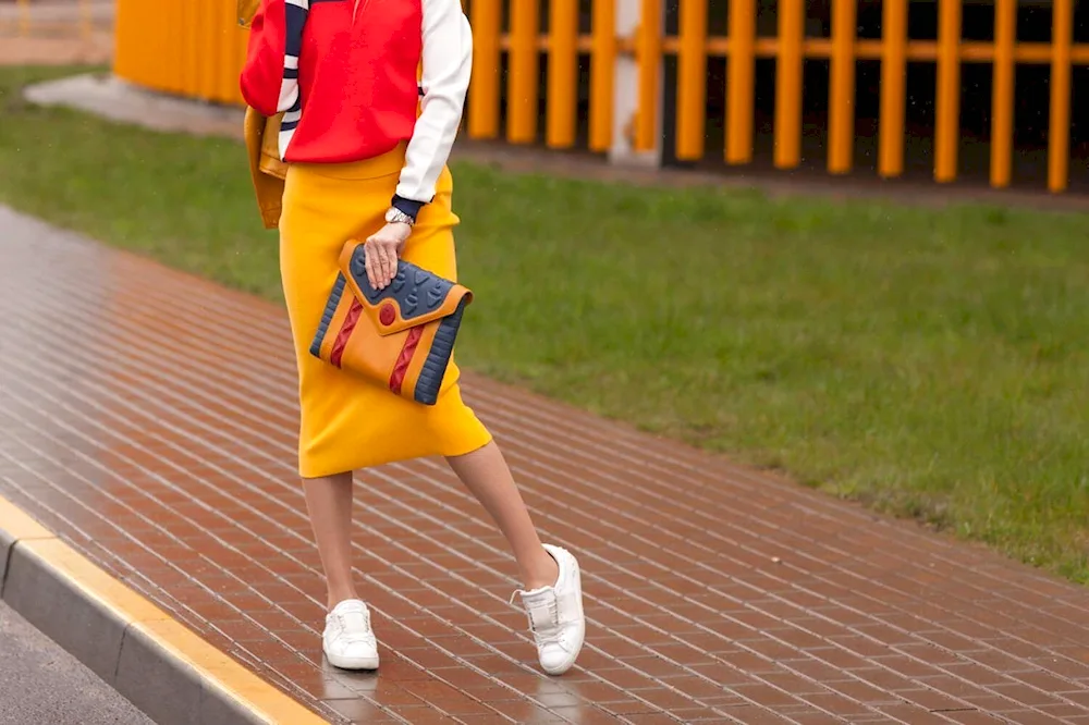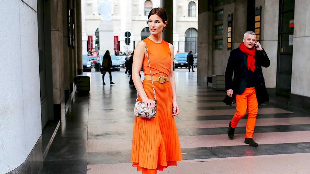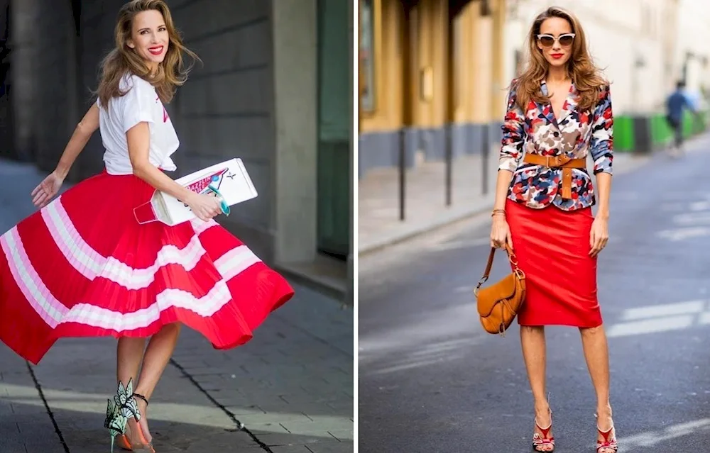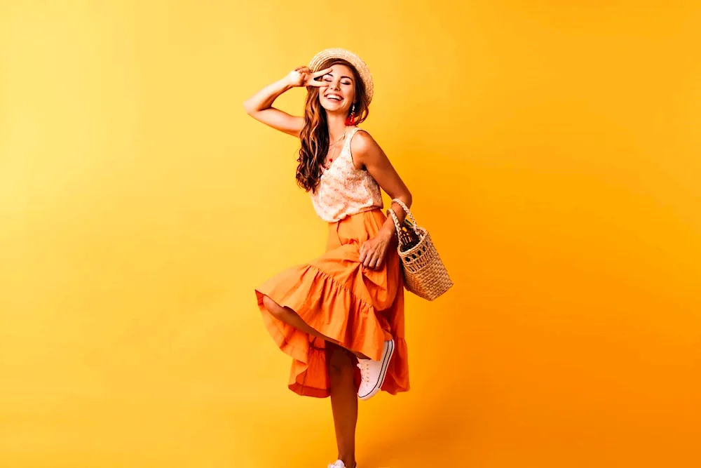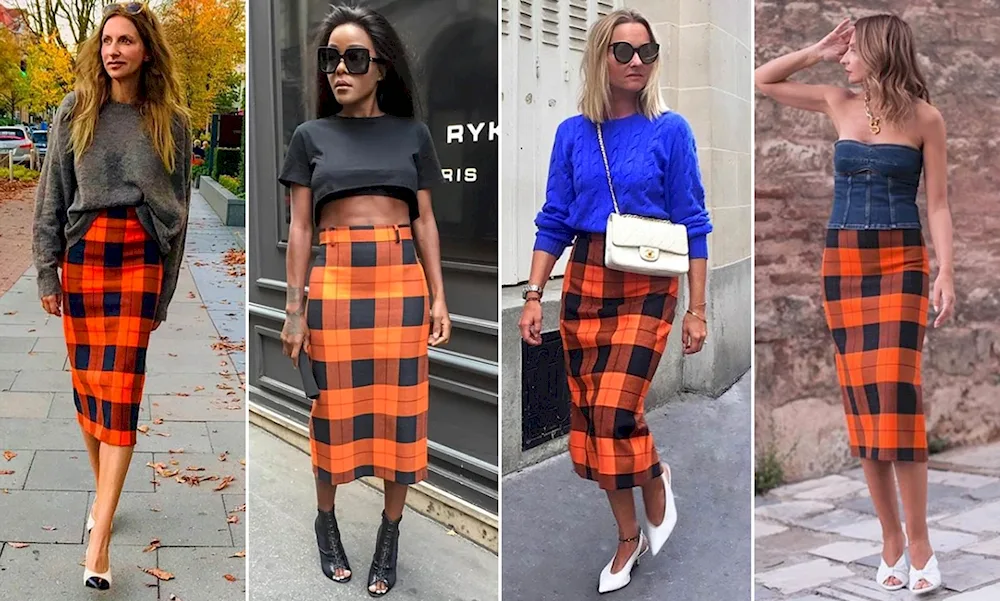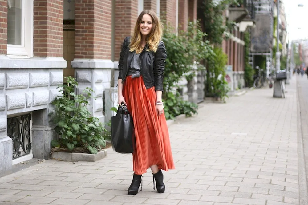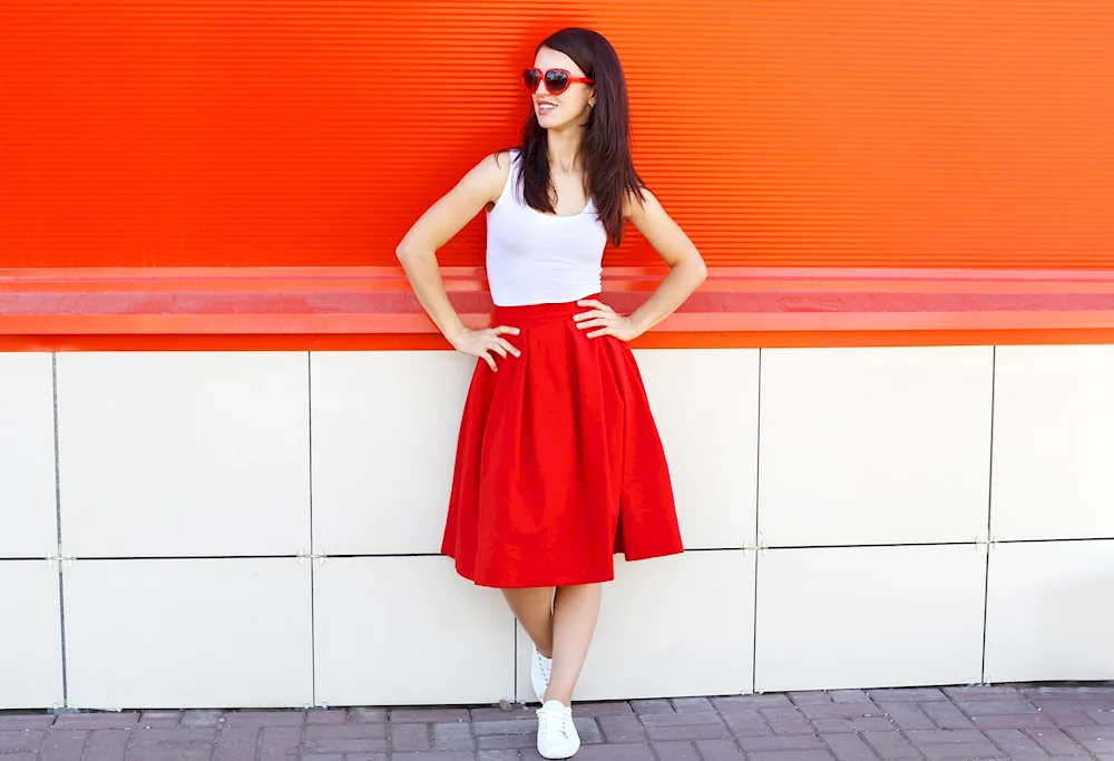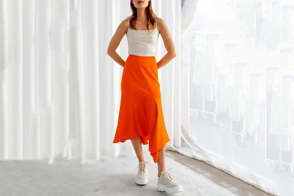 Outfit inspiration for pairing an orange skirt includes a white blouse for a classic look, a denim jacket for a casual vibe, and a black turtleneck for a chic and sophisticated ensemble. These photos will help you visualize different ways to style and accessorize your orange skirt for any occasion.