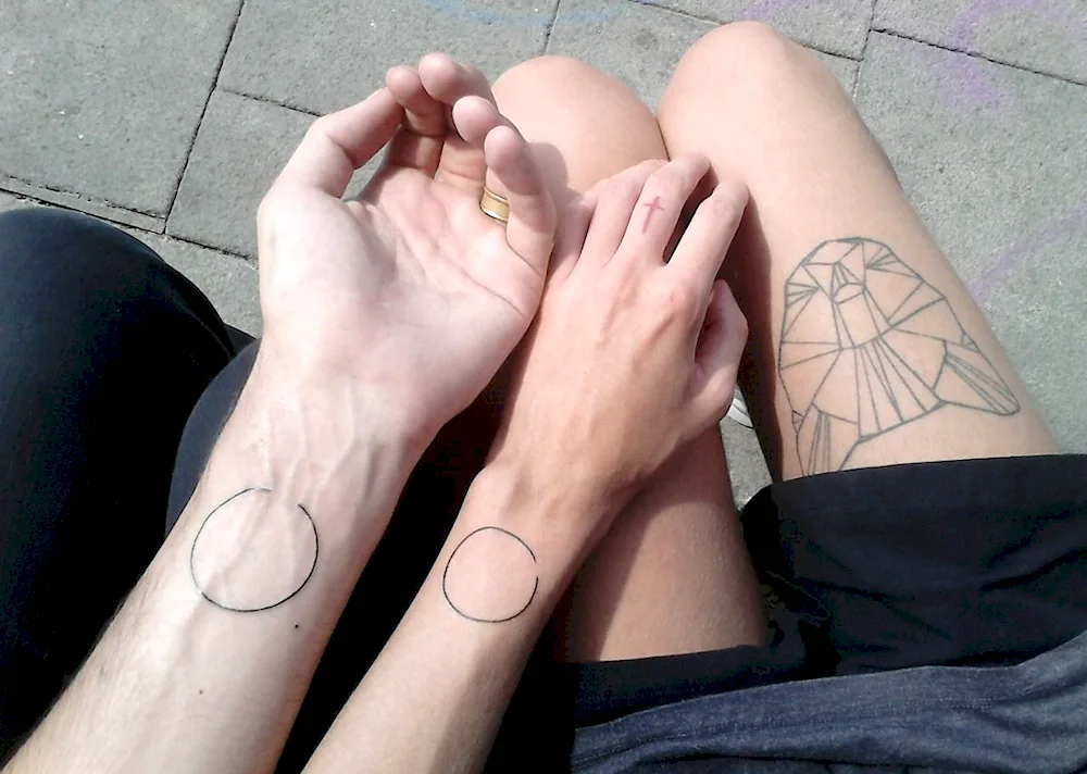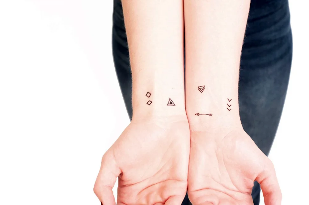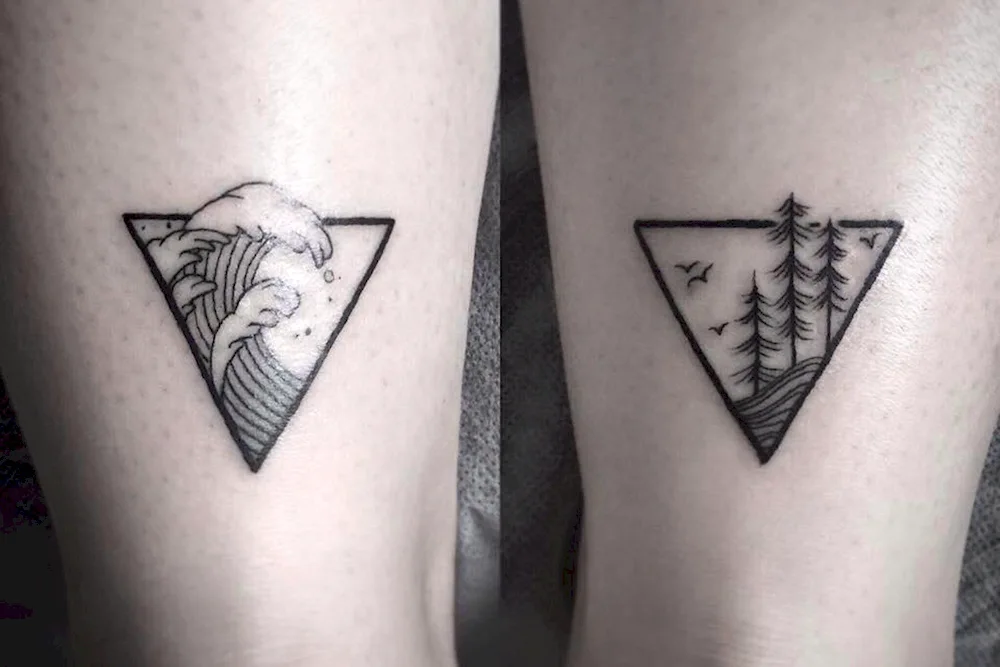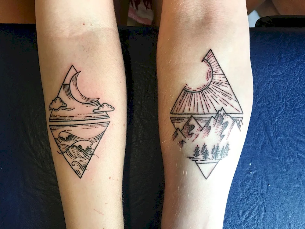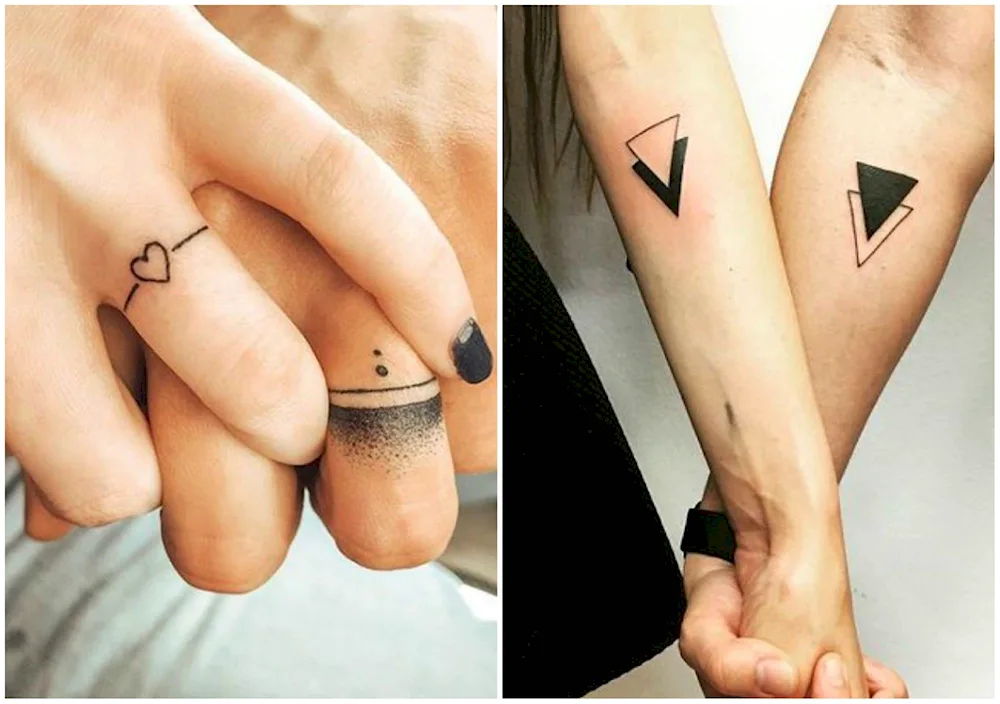 Paired tattoos minimalism Here are some cool paired tattoo designs with a minimalist style. They feature simple, geometric shapes and symbols that are perfect for matching tattoos with a friend or partner. Check them out for some inspiration!