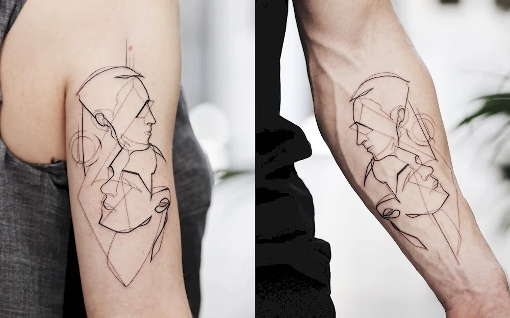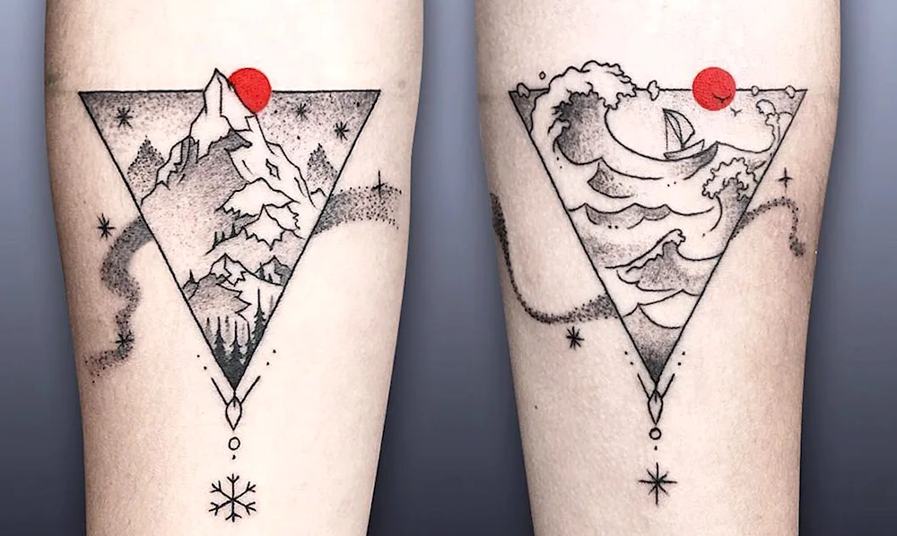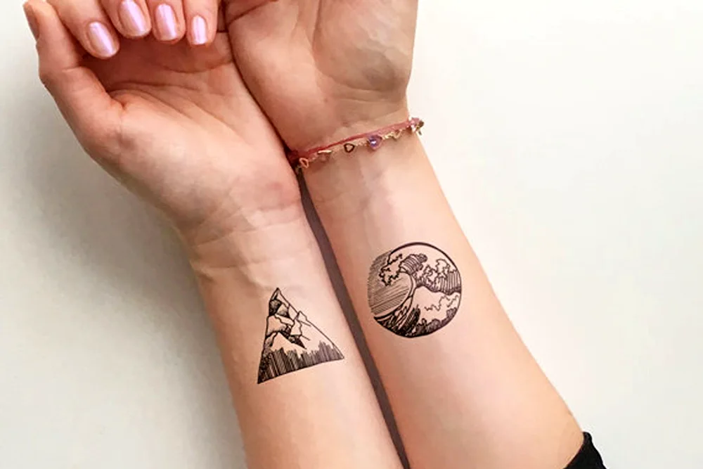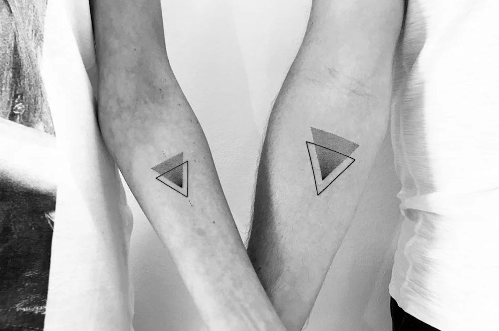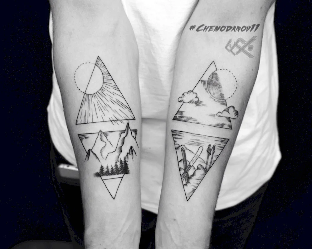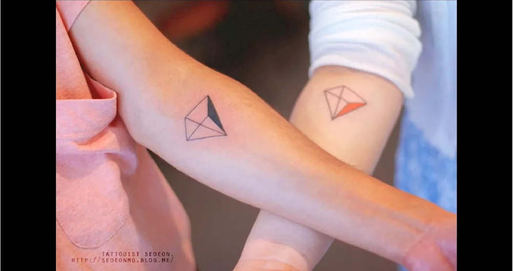 Paired tattoos minimalism Here are some cool paired tattoo designs with a minimalist style. They feature simple, geometric shapes and symbols that are perfect for matching tattoos with a friend or partner. Check them out for some inspiration!