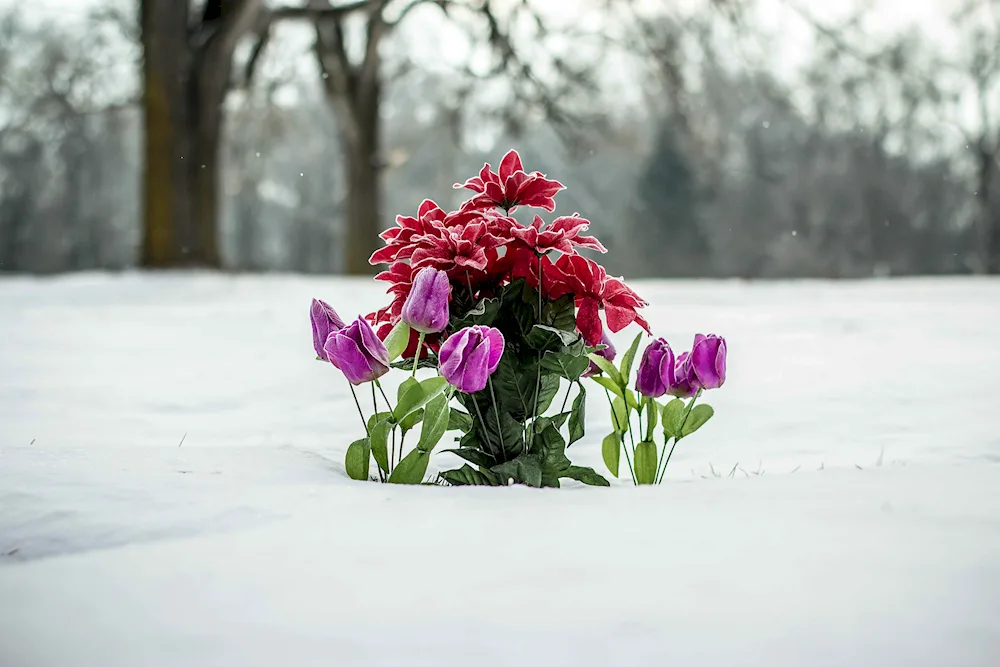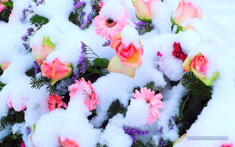 Photo of flowers in the snow Check out these stunning images of snow-covered flowers, showcasing the delicate contrast between the vibrant blooms and the white snow. The photos capture the beauty and resilience of nature even in the coldest of seasons.