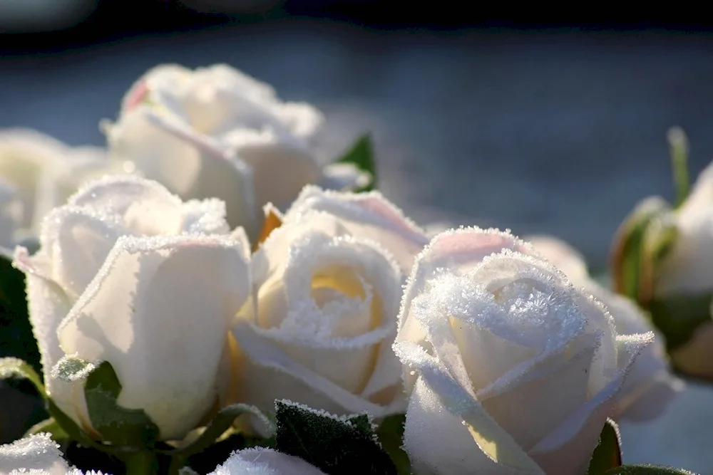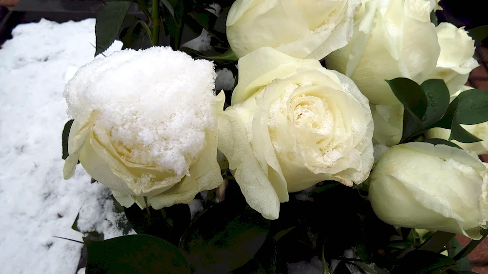 Here are some images of beautiful white roses delicately covered in snow, creating a serene and magical winter scene. The contrast between the pure white blossoms and the glistening snow creates a stunning visual display that is both peaceful and breathtaking.