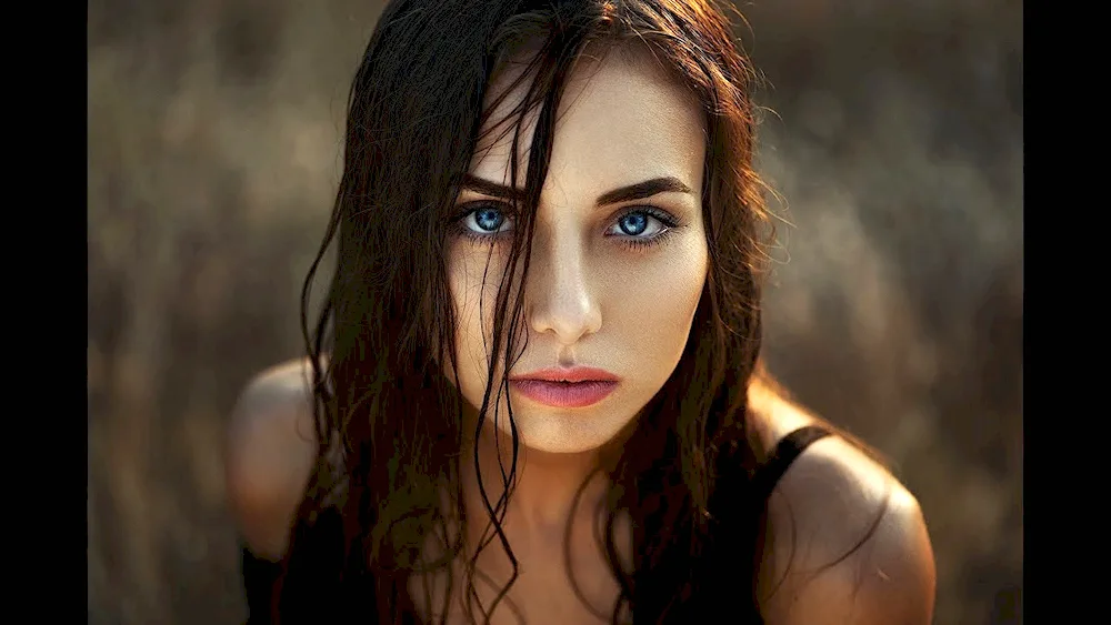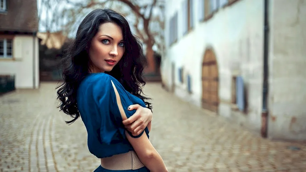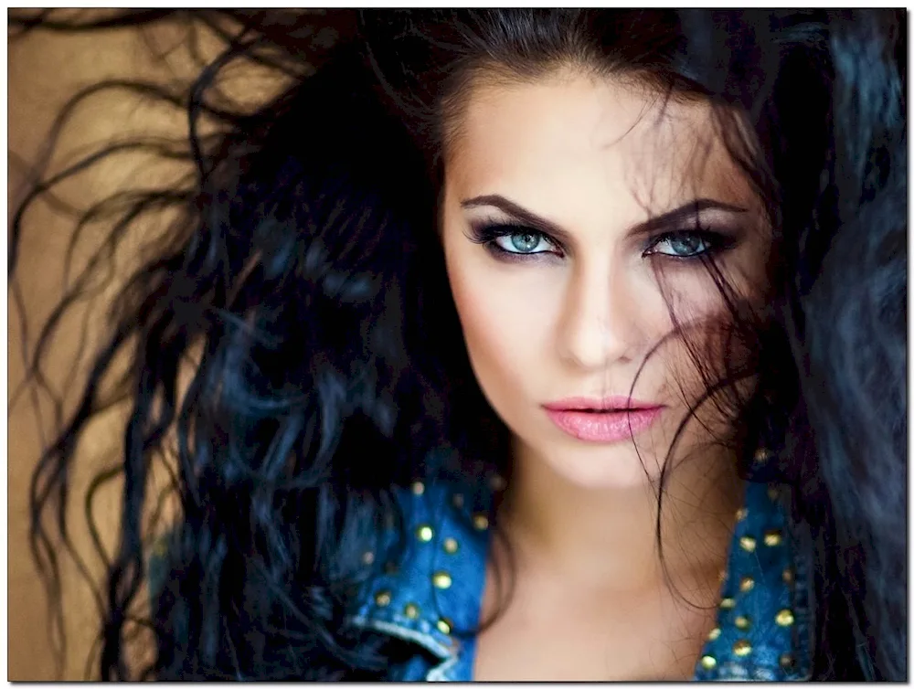 Photos of brunettes with blue eyes Check out these stunning images of women with dark brown hair and striking blue eyes. The combination of these features creates a unique and captivating look that is sure to catch your eye.
