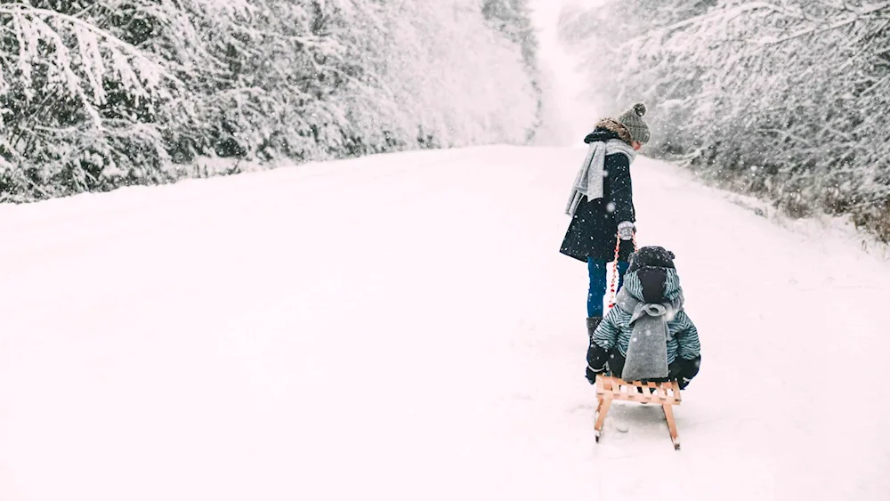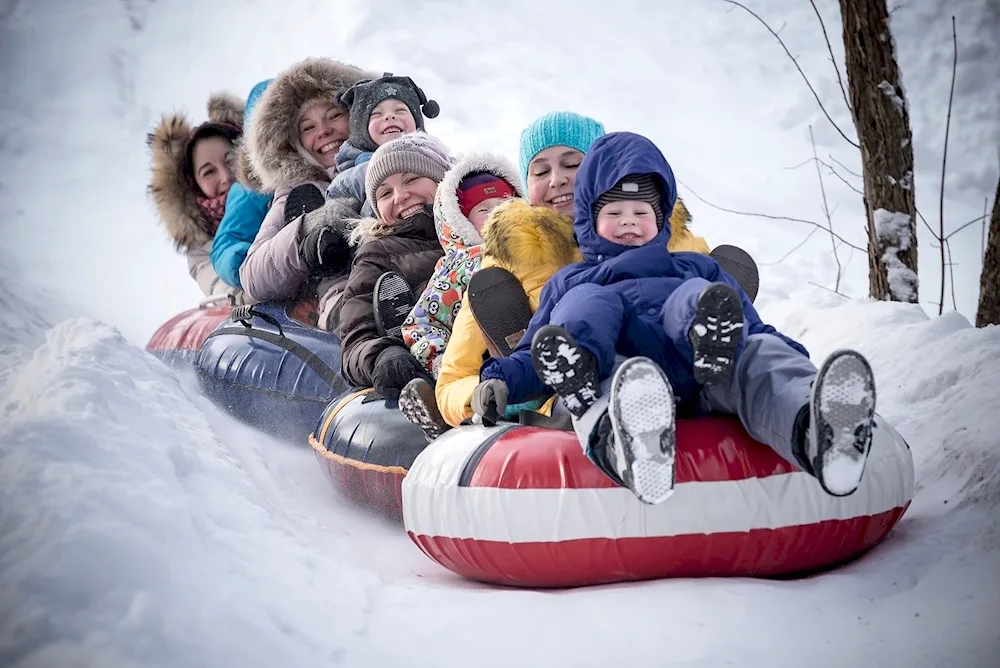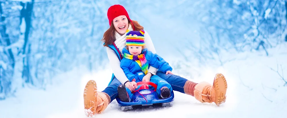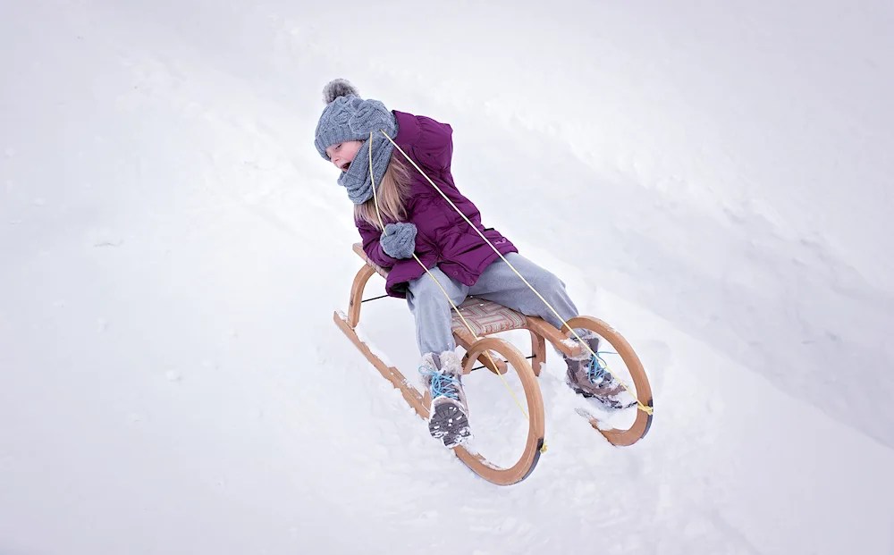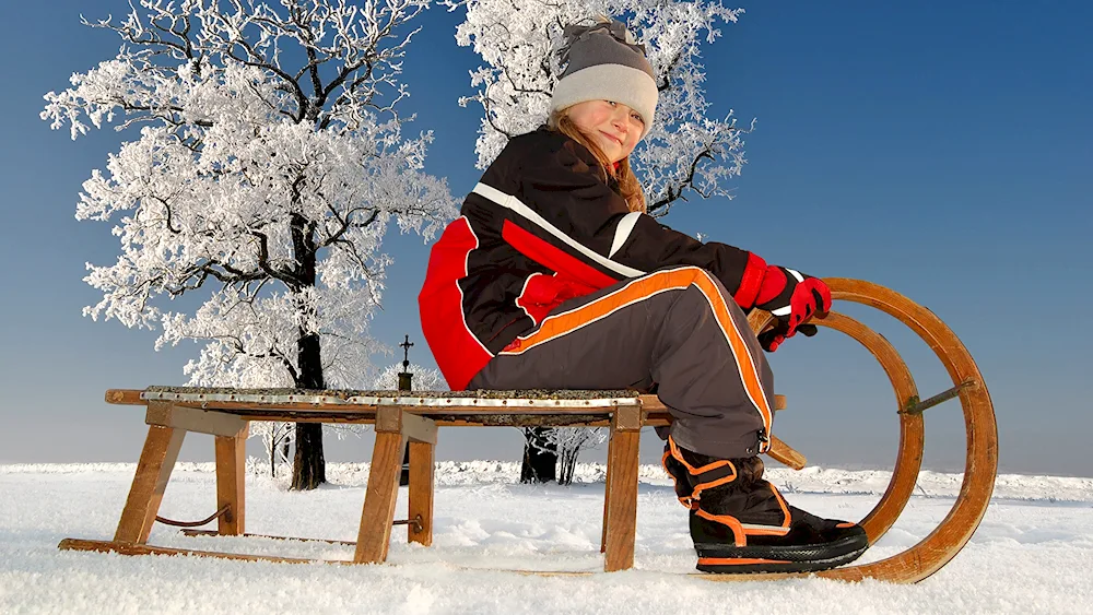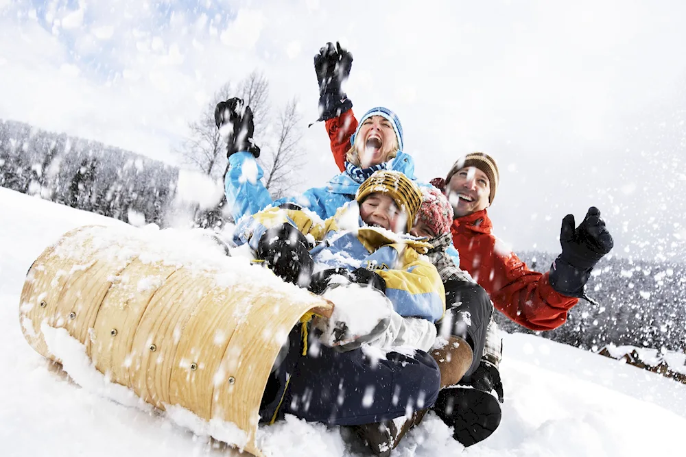 Picture of children sledding in winter Photos of kids enjoying themselves while sledding down snowy hills in the wintertime. The children are bundled up in winter coats and hats, with big smiles on their faces as they glide down the slopes on their sleds.
