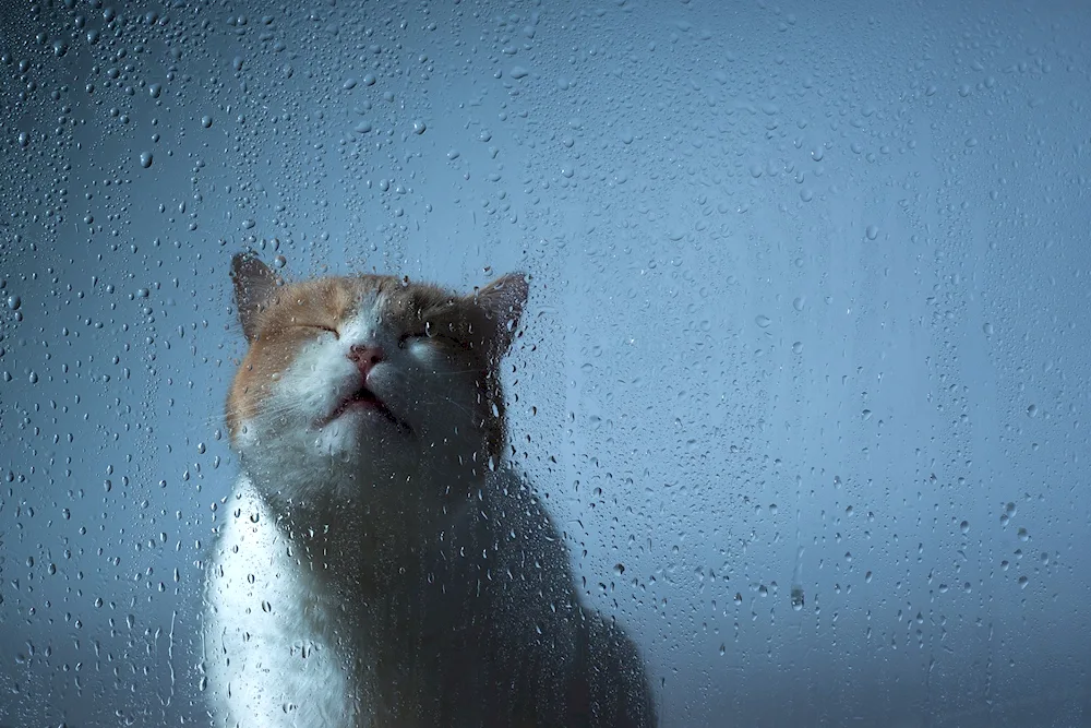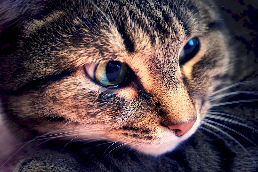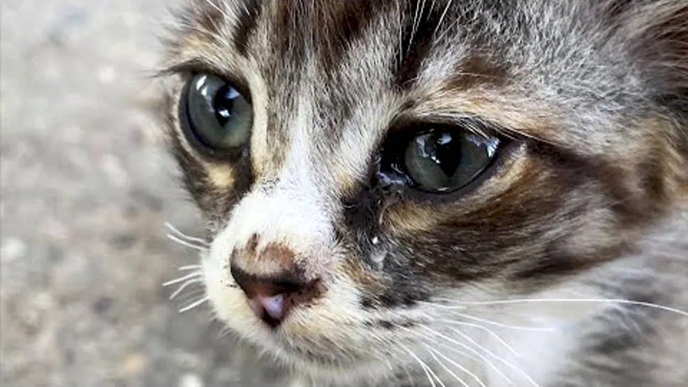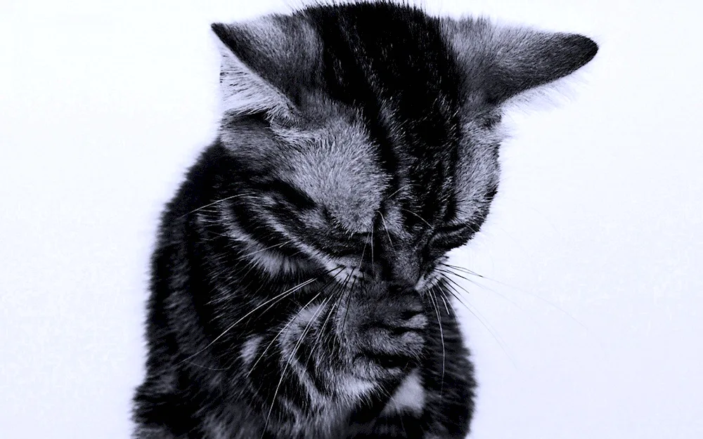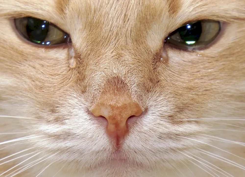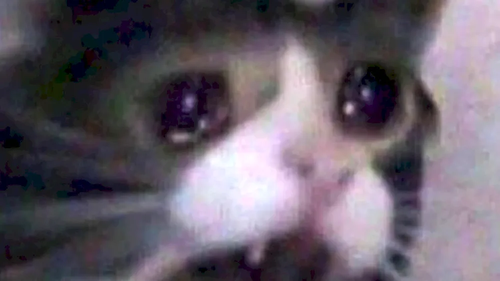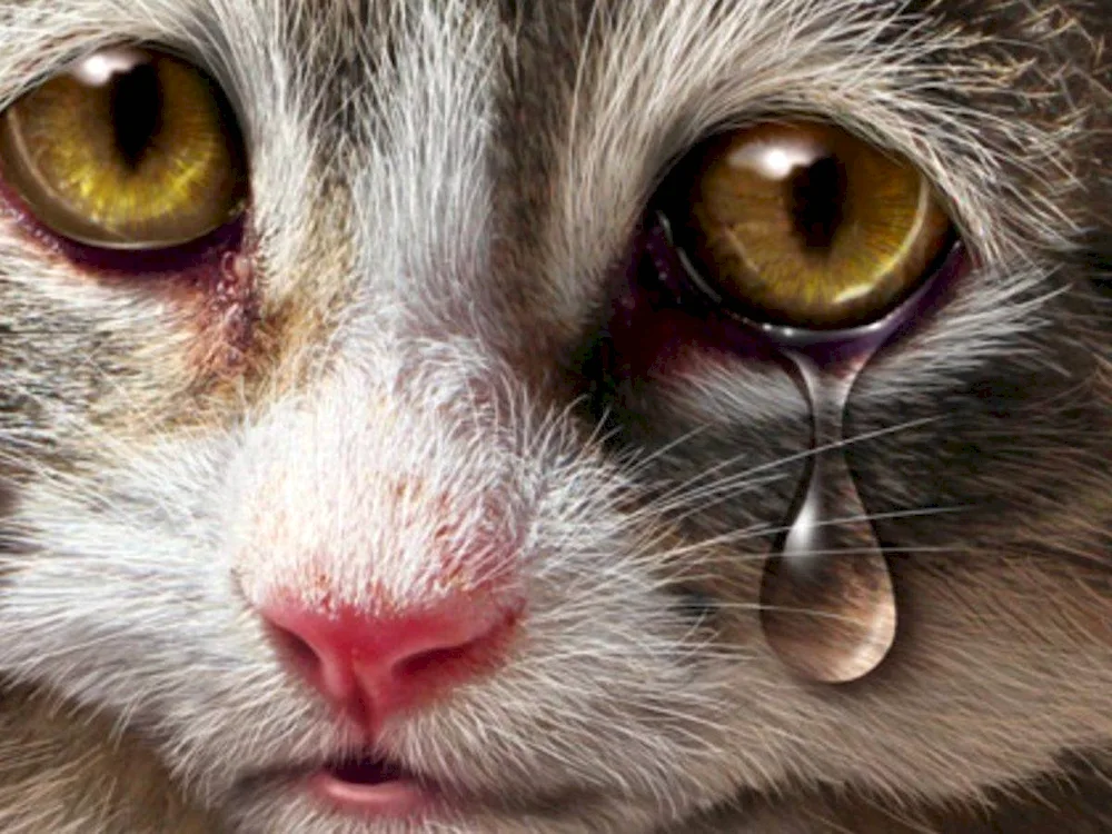 Here are some images capturing a distressed feline shedding tears. The photos convey the emotional vulnerability and sadness of the crying cat.