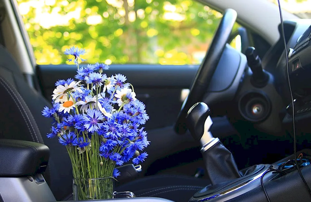 Check out these beautiful images of flowers inside a car, adding a touch of nature to the interior. The vibrant colors and delicate petals create a peaceful and inviting atmosphere for any journey.