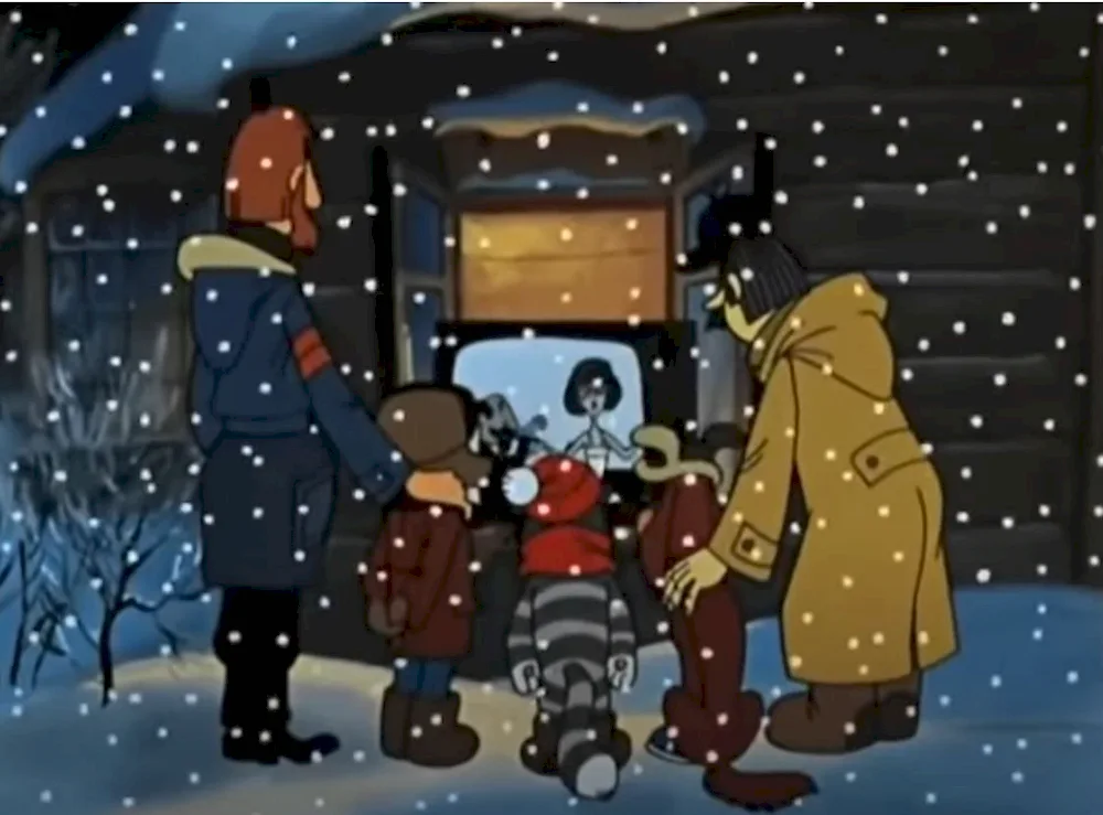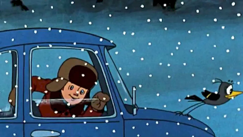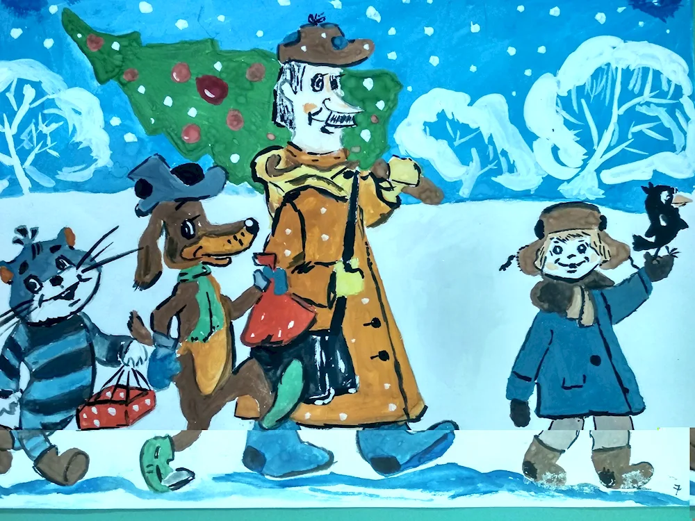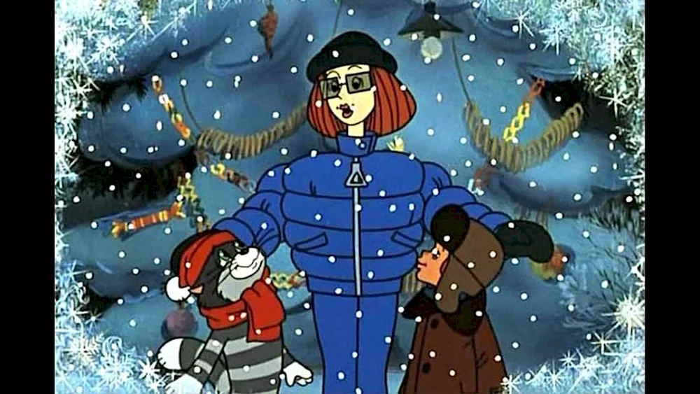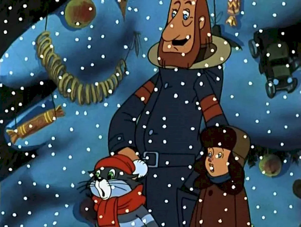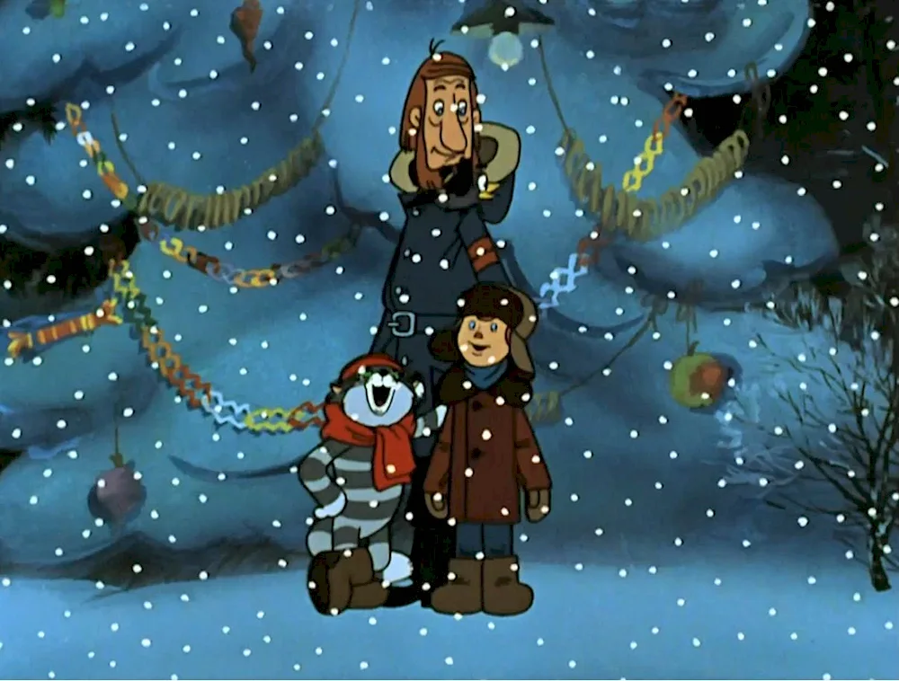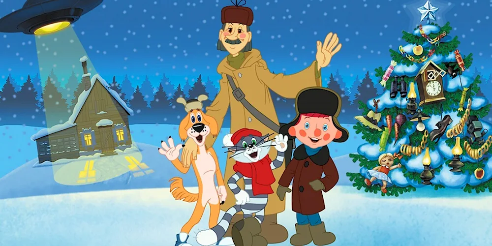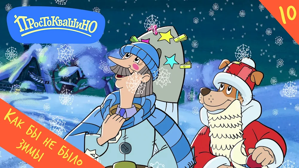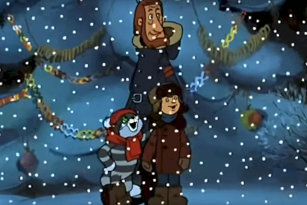 Winter in Prostokvashino captured in photos - see the charming village covered in snow, with children playing, animals frolicking, and cozy cottages adorned with festive decorations. The images exude a sense of peace, warmth, and nostalgia, inviting you to step into the magical world of the beloved Russian animated series.