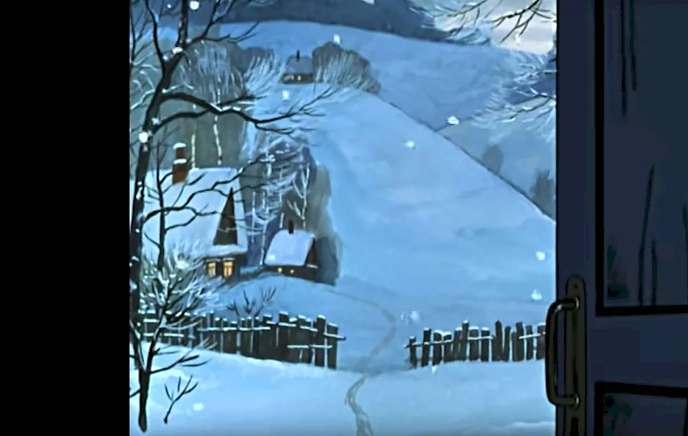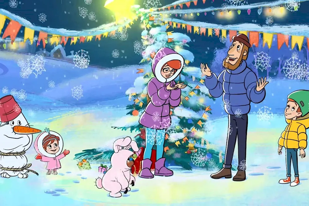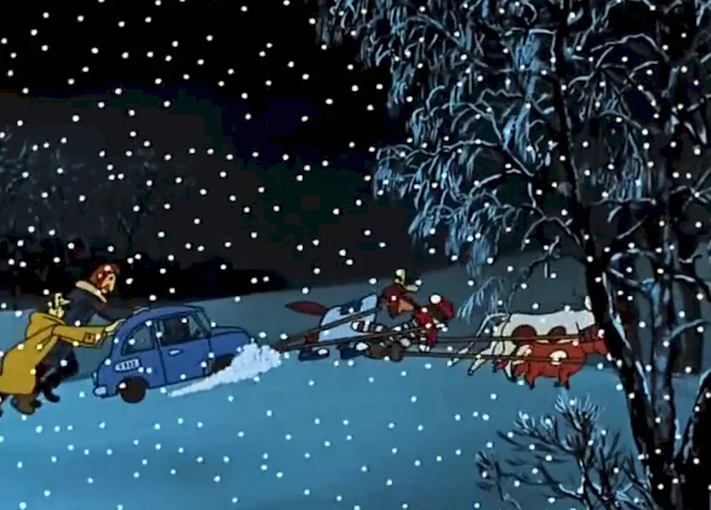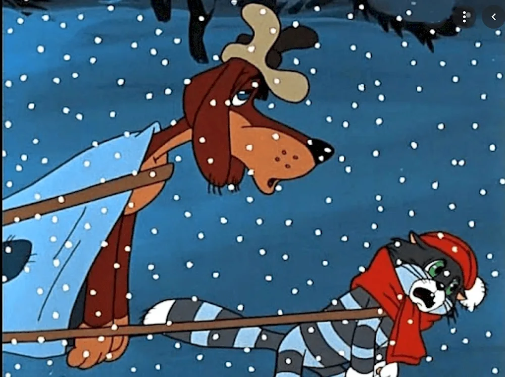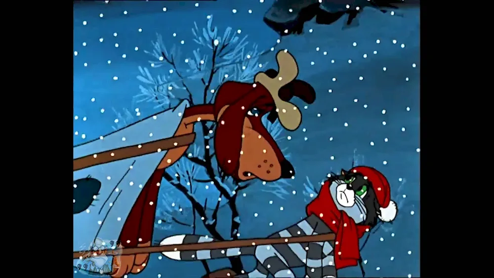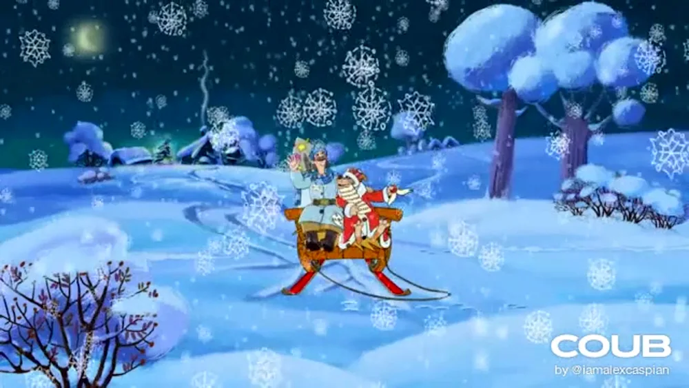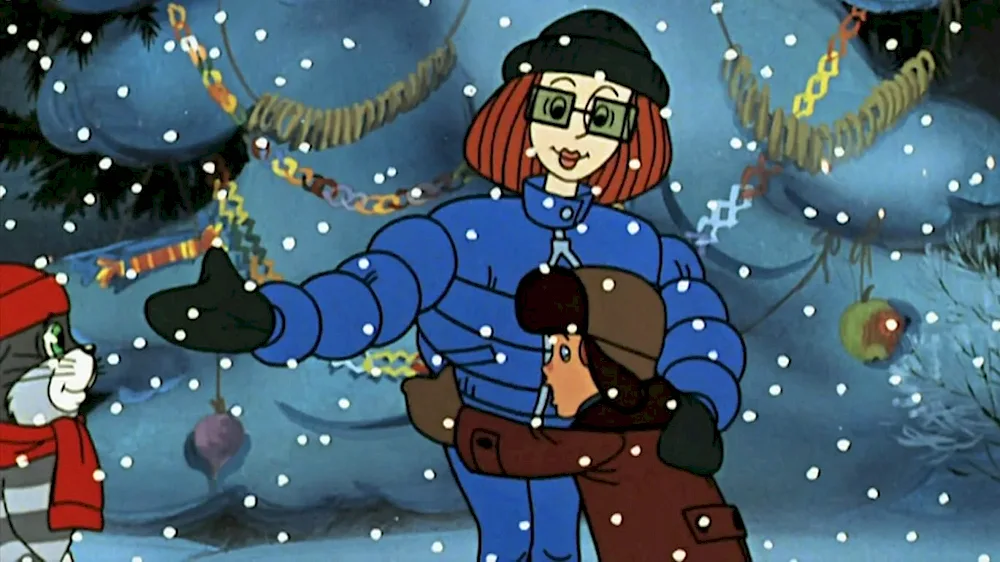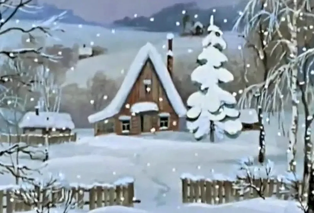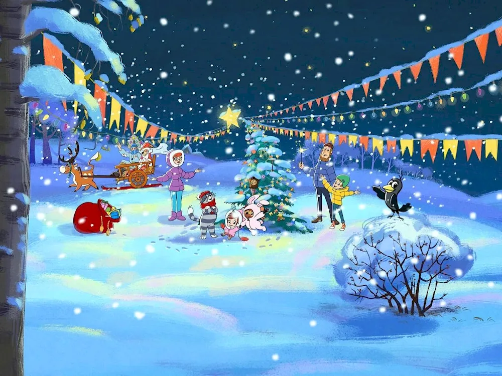 Winter in Prostokvashino captured in photos - see the charming village covered in snow, with children playing, animals frolicking, and cozy cottages adorned with festive decorations. The images exude a sense of peace, warmth, and nostalgia, inviting you to step into the magical world of the beloved Russian animated series.