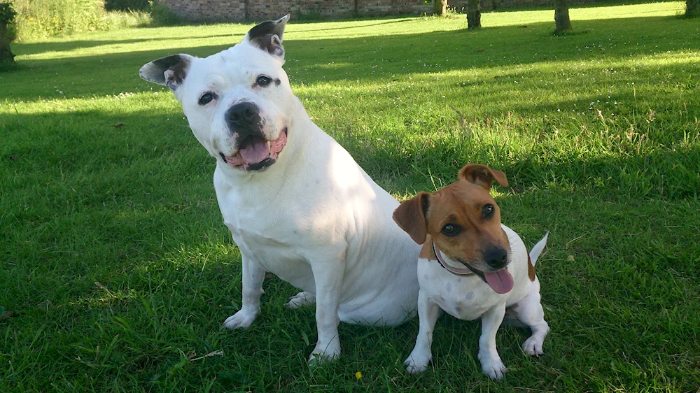 Staffordshire terrier and boxer