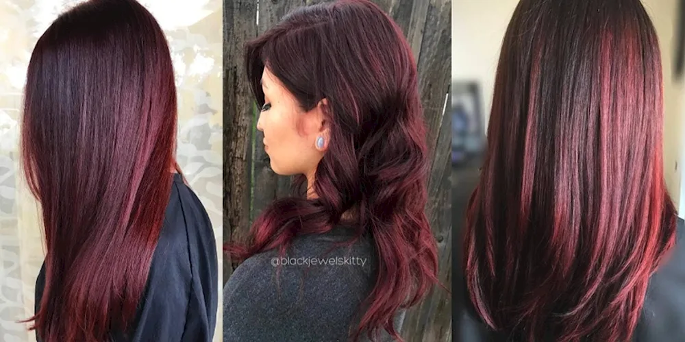 Plum hair color Photos of stunning deep purple hair shades, perfect for anyone wanting a bold and vibrant look. Browse through images of plum-colored hair on different skin tones and hair textures for inspiration.