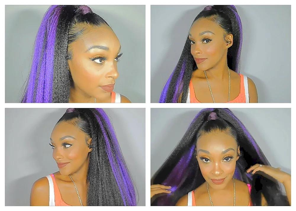Ponytail with Kanekalon and Braids Photos showcasing various hairstyles featuring a ponytail with Kanekalon extensions and intricate braids, perfect for adding volume and length to your look. Get inspired by these stunning images and try out a new hairstyle today!