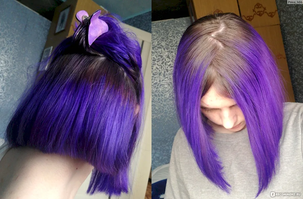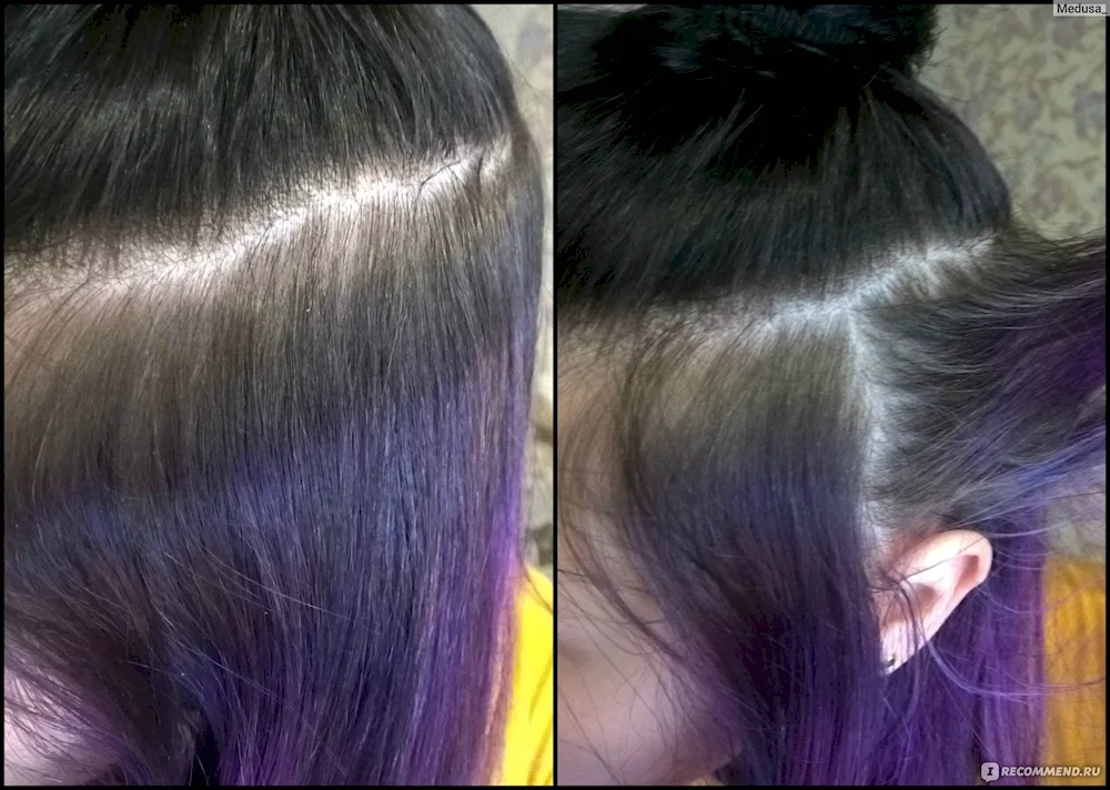 Vibrant purple hair toner designed specifically for dark hair is showcased in these images, highlighting its ability to add depth and dimension to your mane. The before-and-after pictures demonstrate the transformative power of this tonic, giving you the confidence to switch up your look with a pop of color.