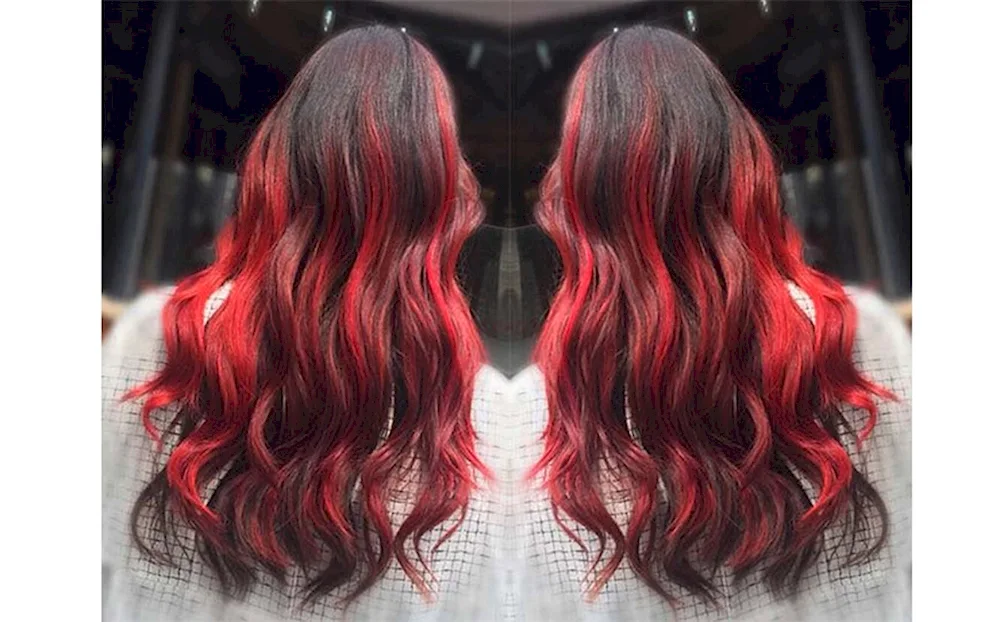 Red balayage on dark hair Check out these stunning images of dark-haired beauties rocking vibrant red balayage highlights! The fiery red hues add a pop of color and dimension to their hair, creating a bold and eye-catching look.