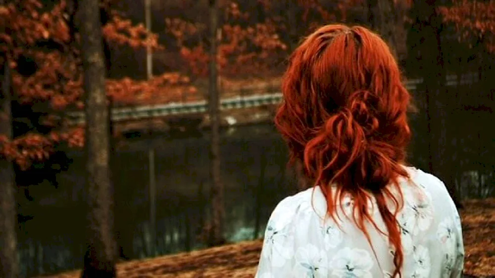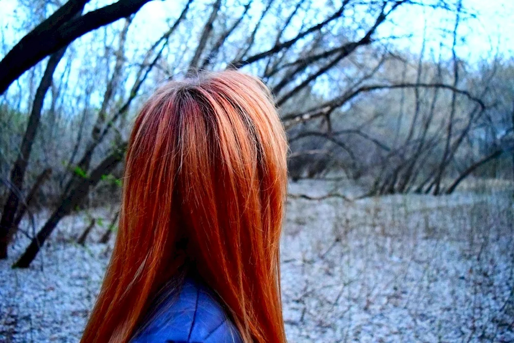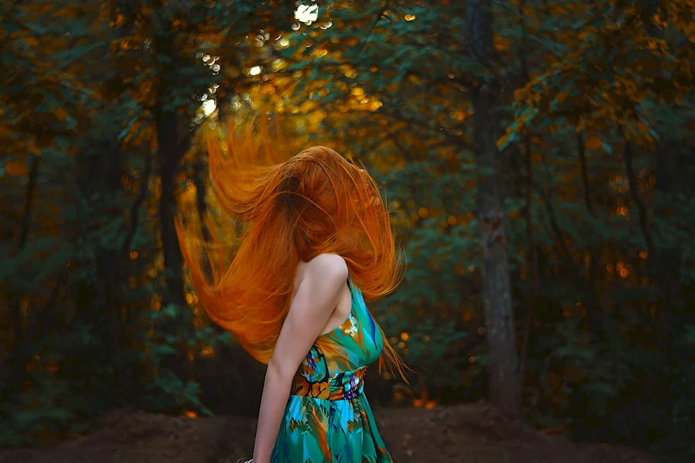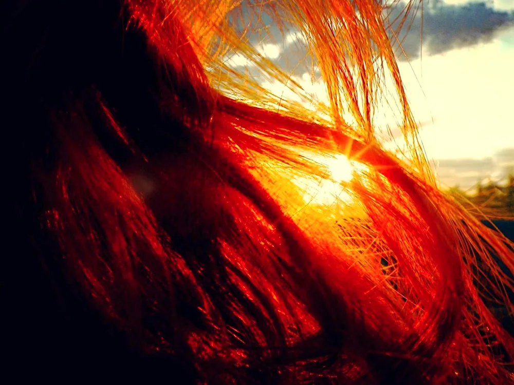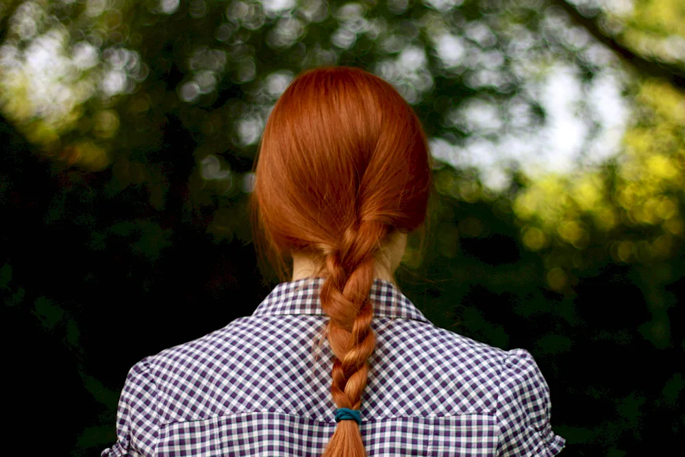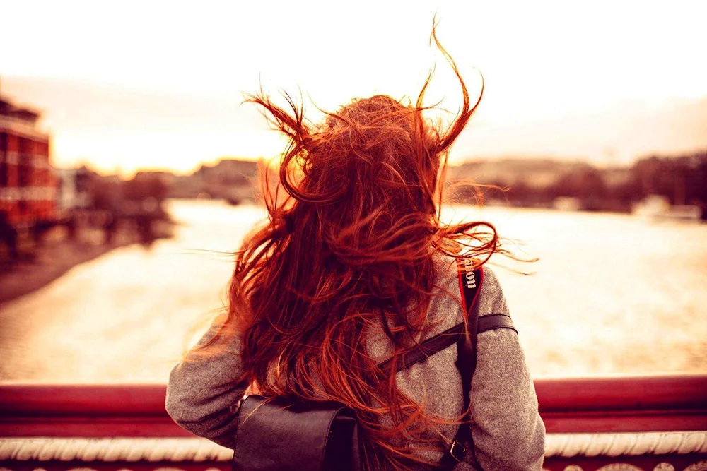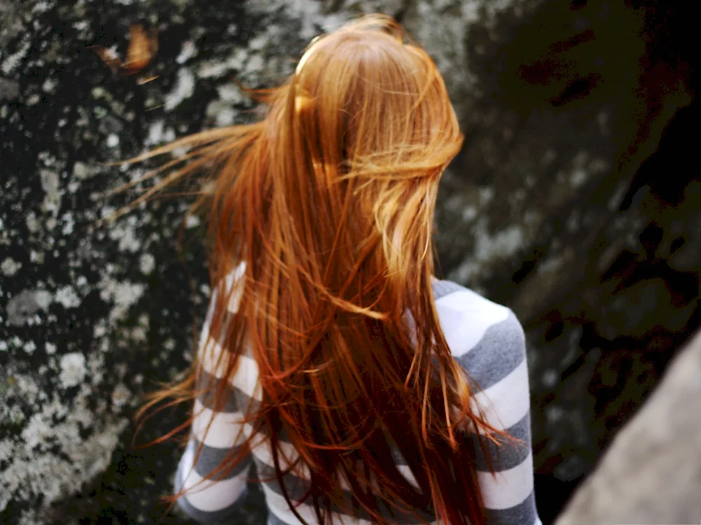 Photos showcasing fiery red hair from behind, cascading in waves down a person's back, radiating vibrant hues under the sunlight. A series of images capturing the unique and striking beauty of crimson locks falling gracefully over shoulders, creating a breathtaking sight from the rear perspective.