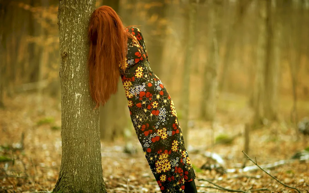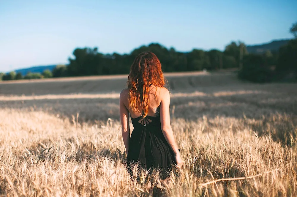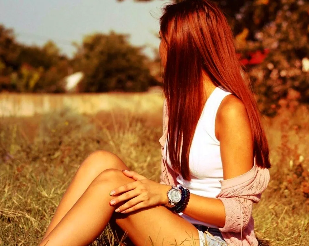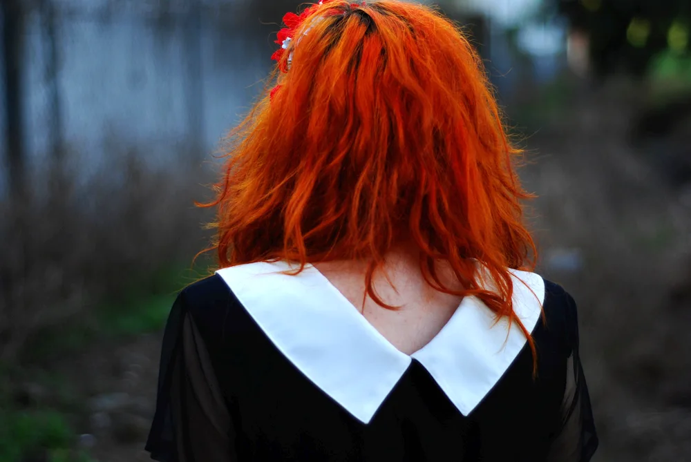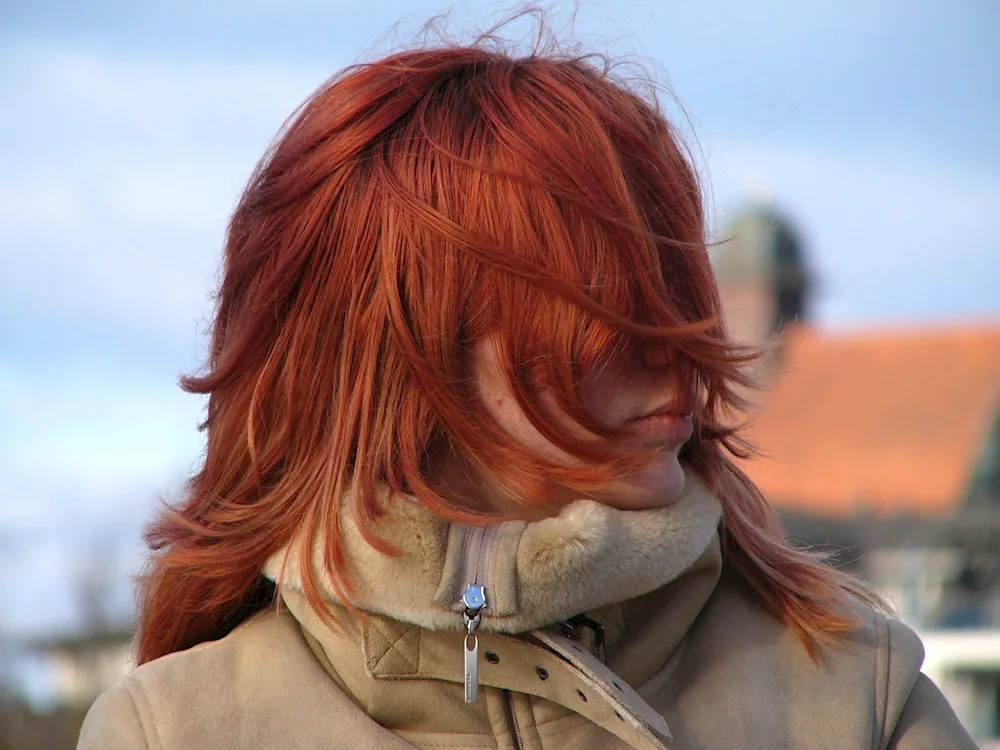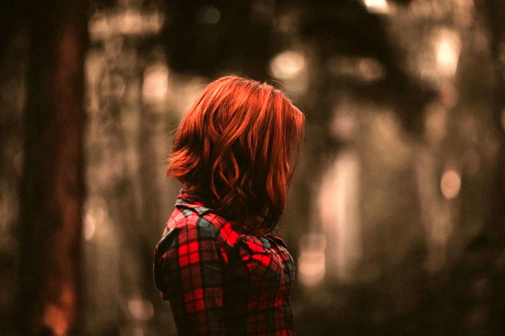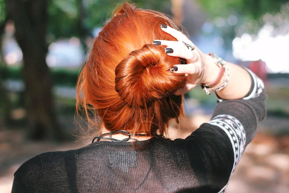 Photos showcasing fiery red hair from behind, cascading in waves down a person's back, radiating vibrant hues under the sunlight. A series of images capturing the unique and striking beauty of crimson locks falling gracefully over shoulders, creating a breathtaking sight from the rear perspective.