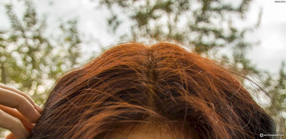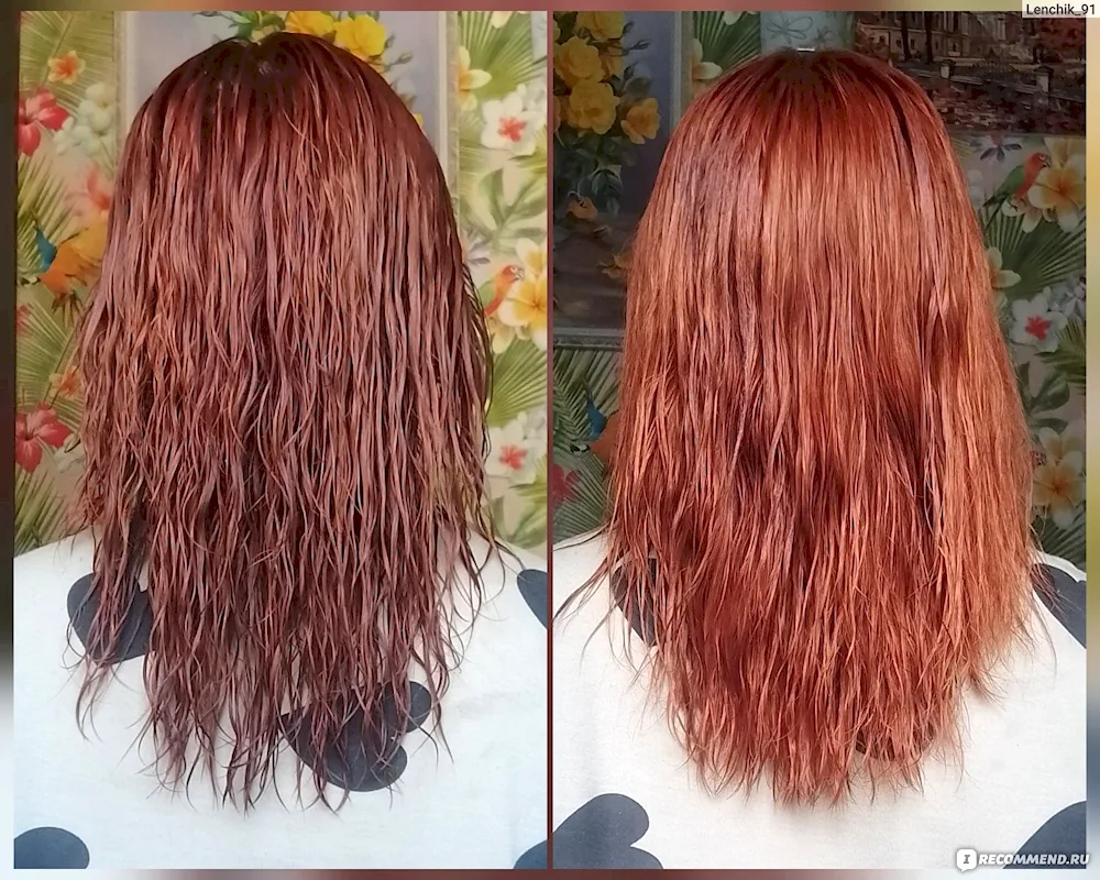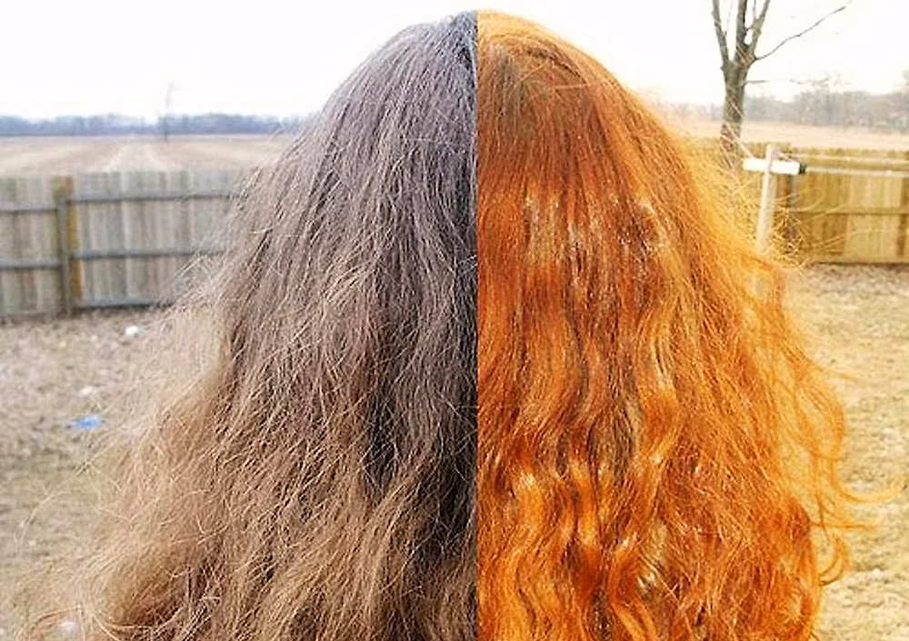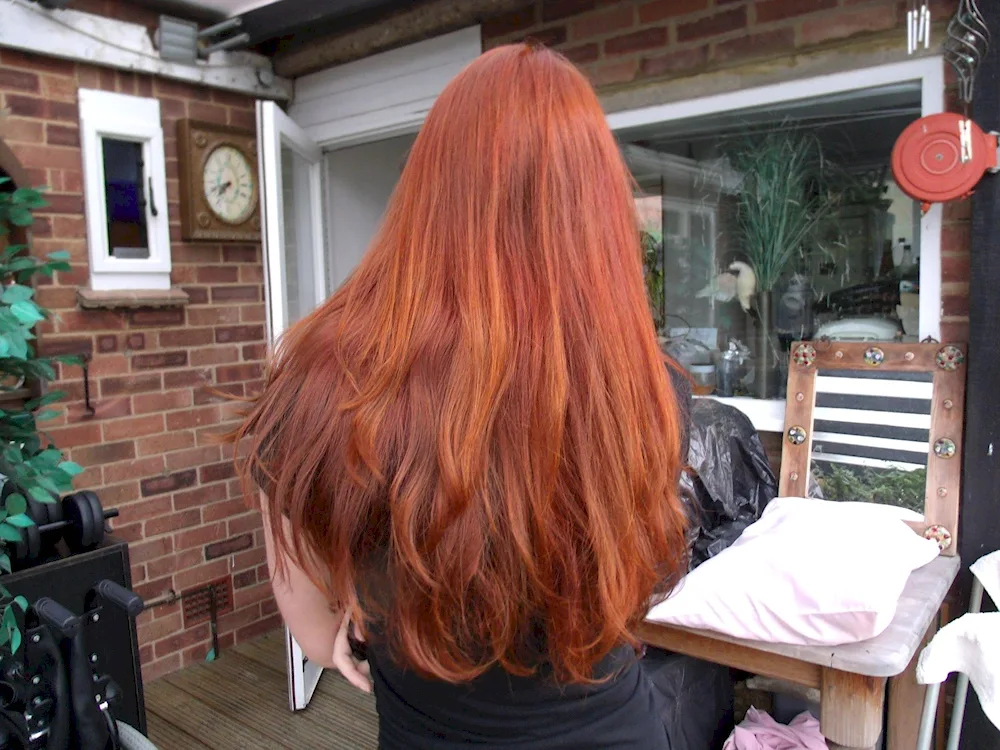 Red henna on dark blond hair Photos of vibrant red henna dye applied on dark blonde hair, showcasing the beautiful contrast and rich color payoff. You can see the stunning transformation from the natural lightness of the hair to the bold and striking red hues of the henna dye.