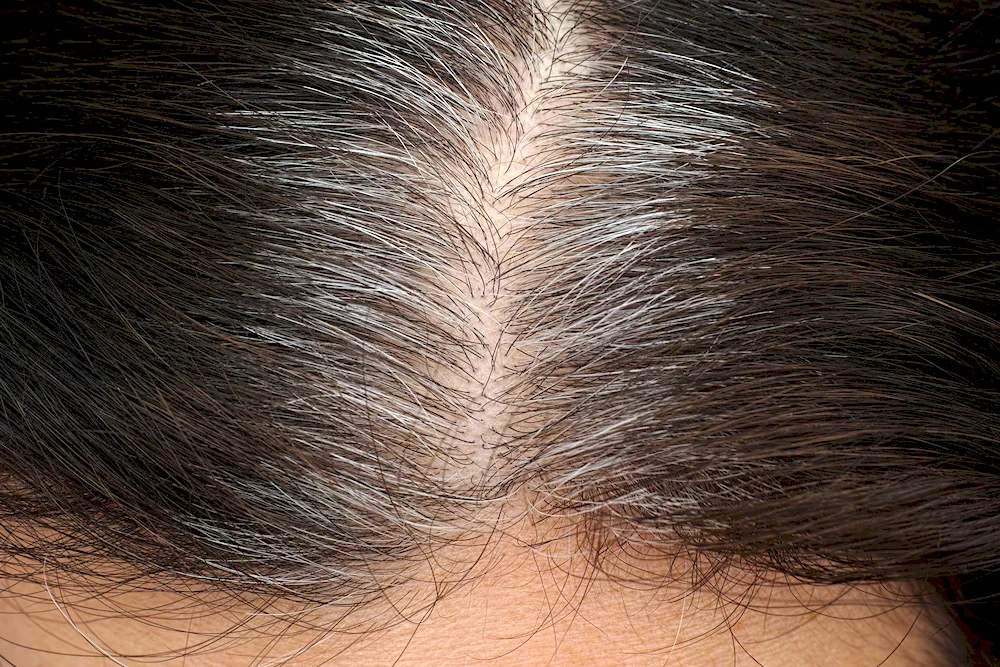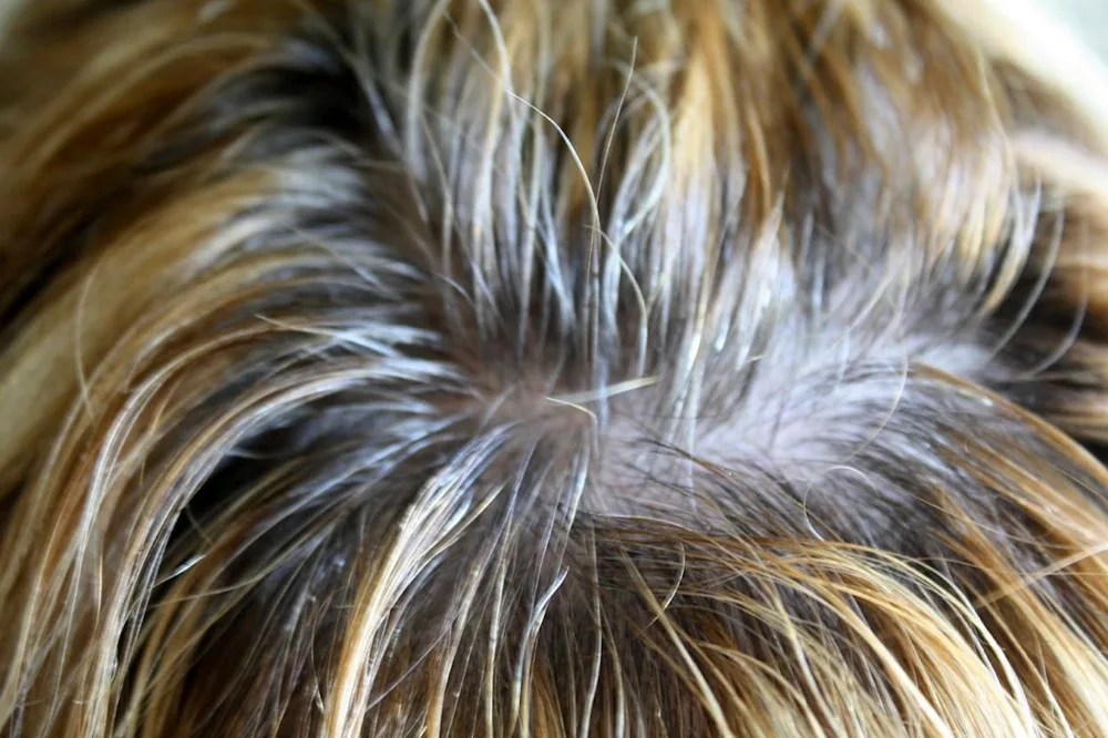 Grey roots on dark hair