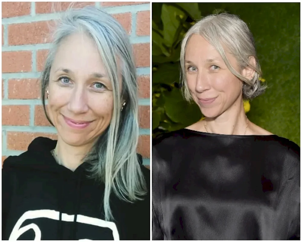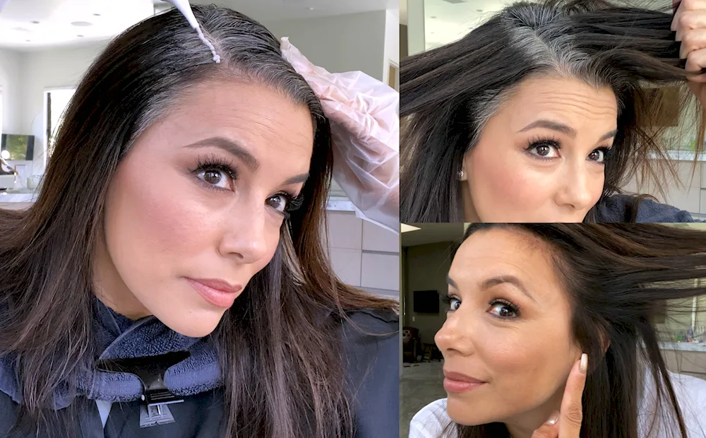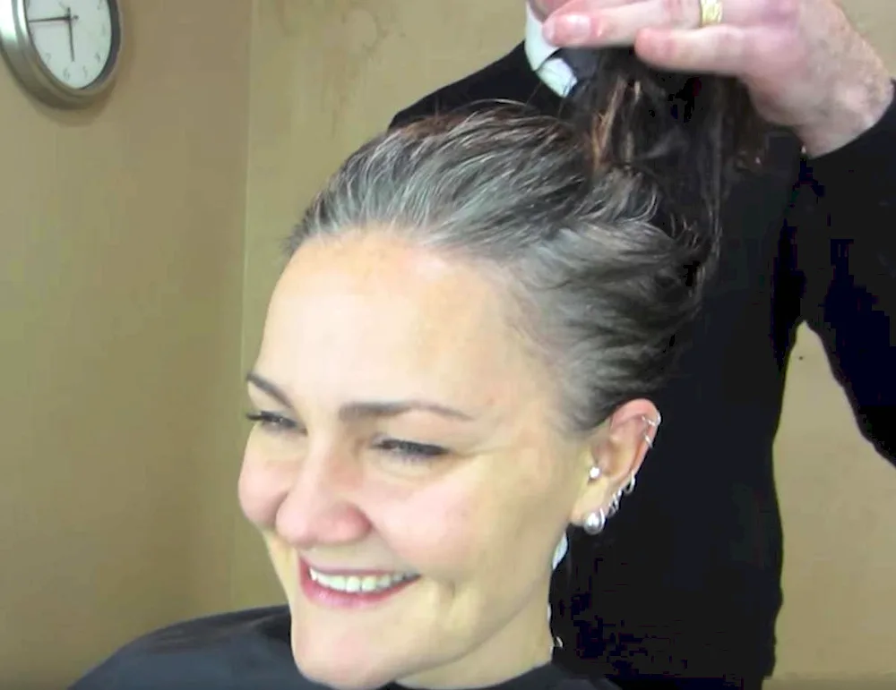 Grey hairstyles with outgrown roots. Grey hair colouring