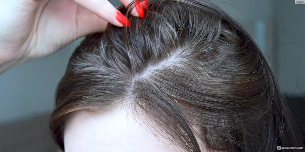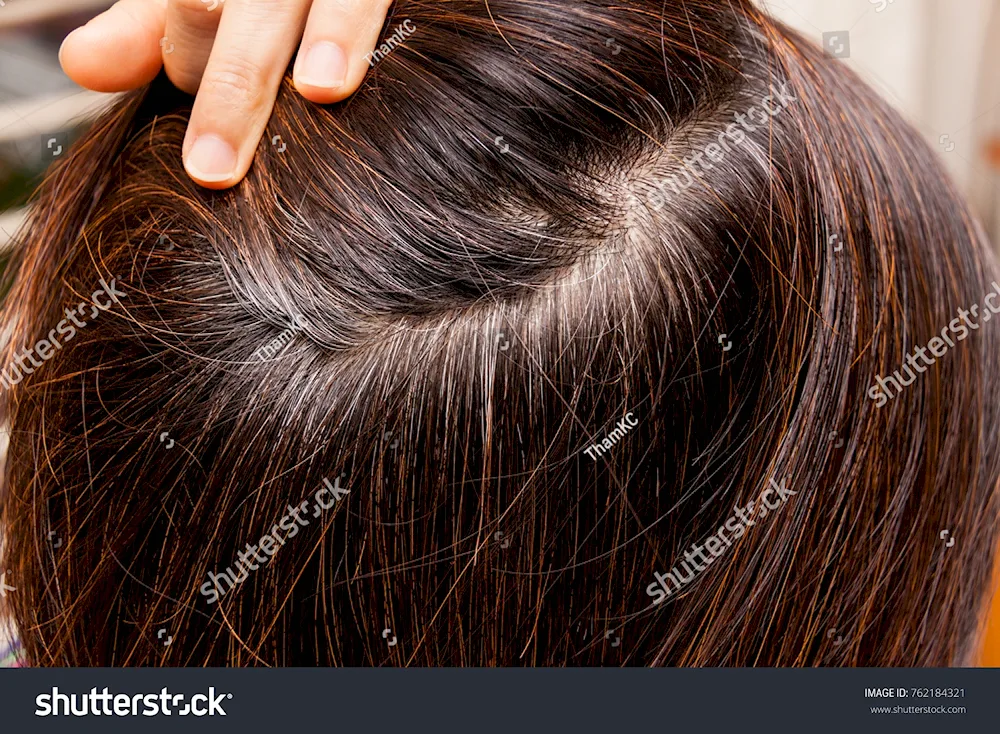 Grey roots on dark hair. roots