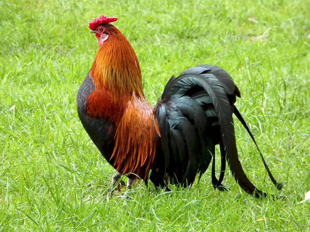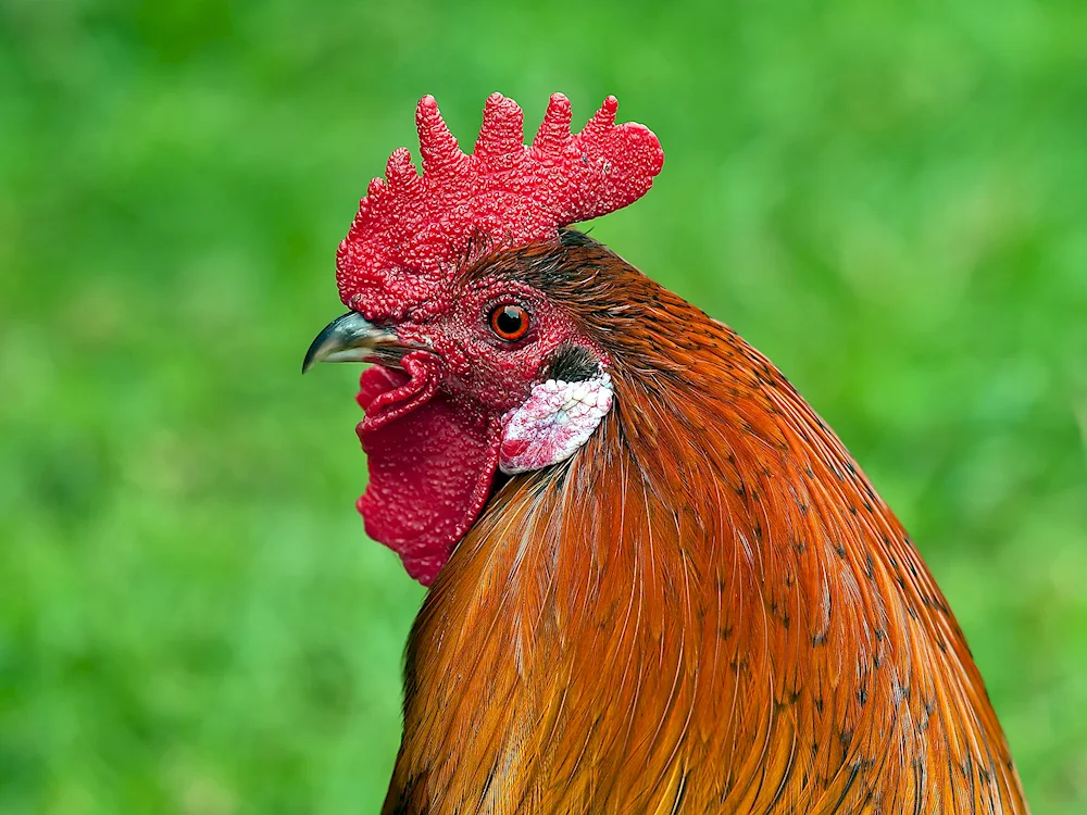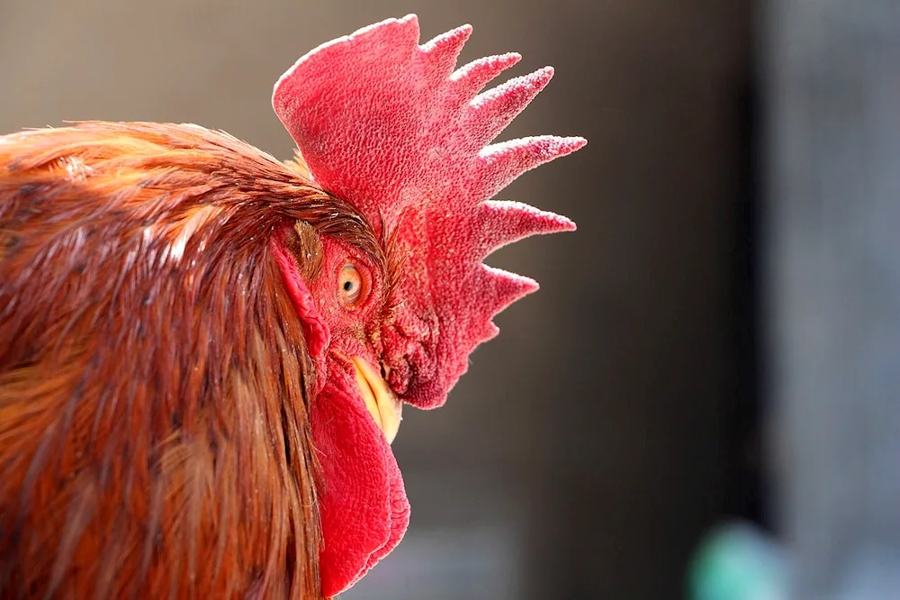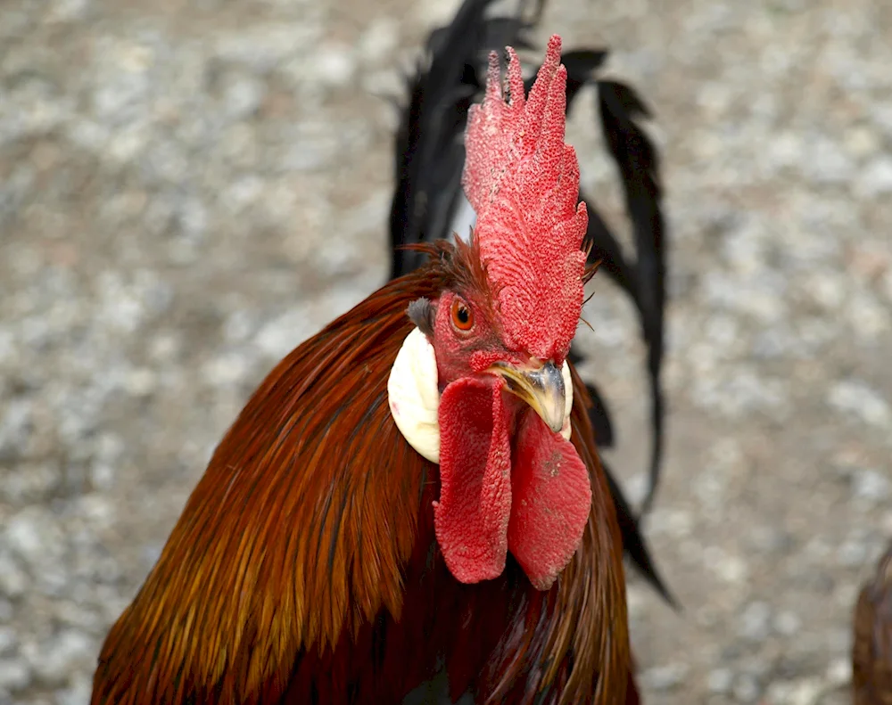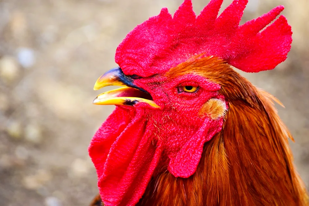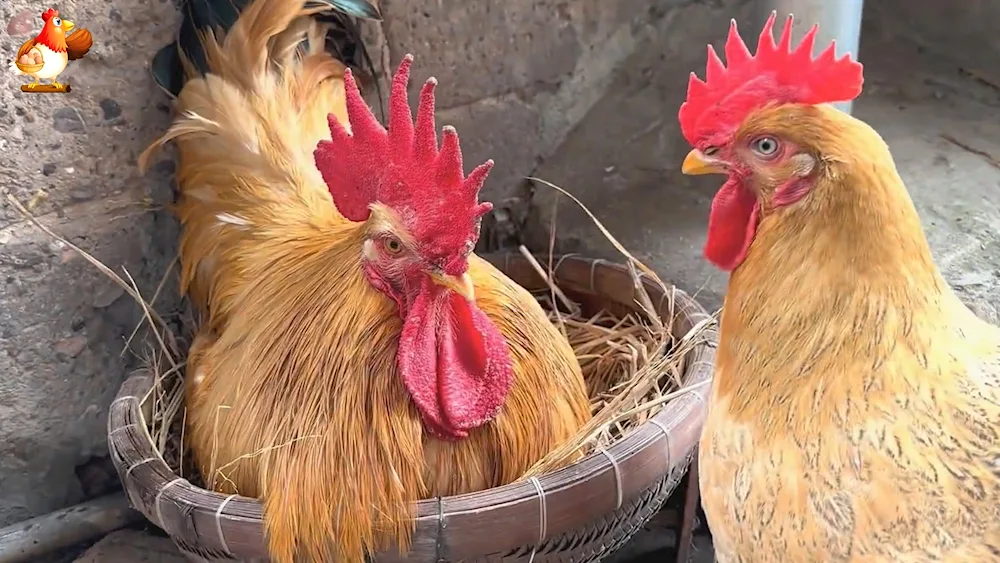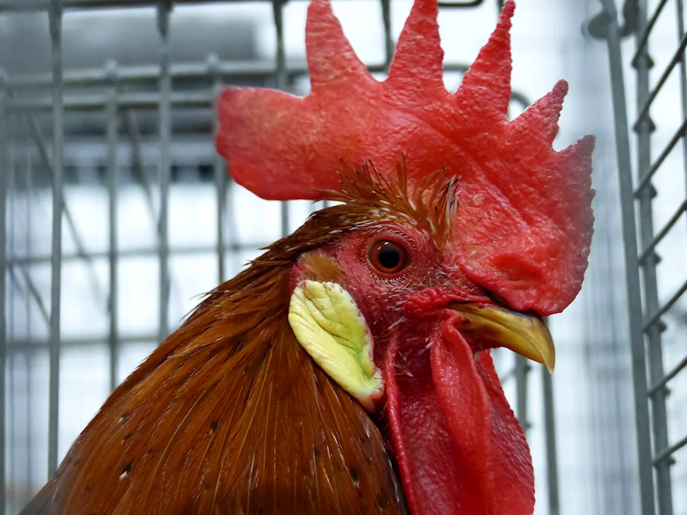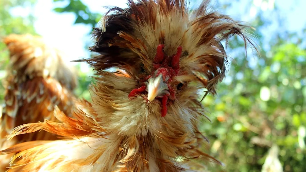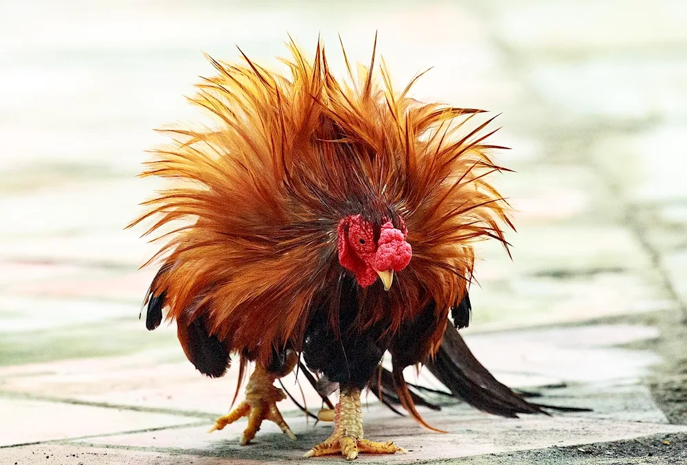 Photos of roosters perched on top of people's heads, showcasing elaborate hairstyles with rooster decorations. Images capturing the unique and eye-catching trend of incorporating live roosters into hair styling, adding a playful and whimsical touch to the overall look.