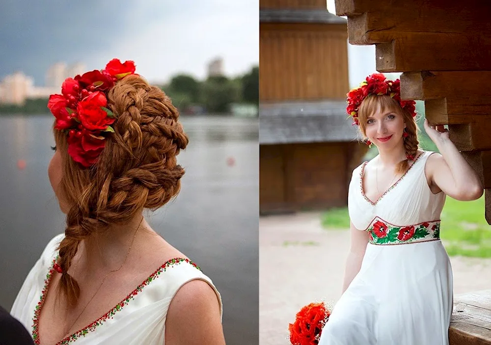 Examples of traditional Russian hairstyles include intricate braids adorned with ribbons, floral wreaths worn on top of the head, and elaborate updos with decorative pins and combs. These hairstyles are often worn during special occasions such as weddings, festivals, and traditional celebrations, showcasing the rich history and cultural significance of Russian folk traditions.