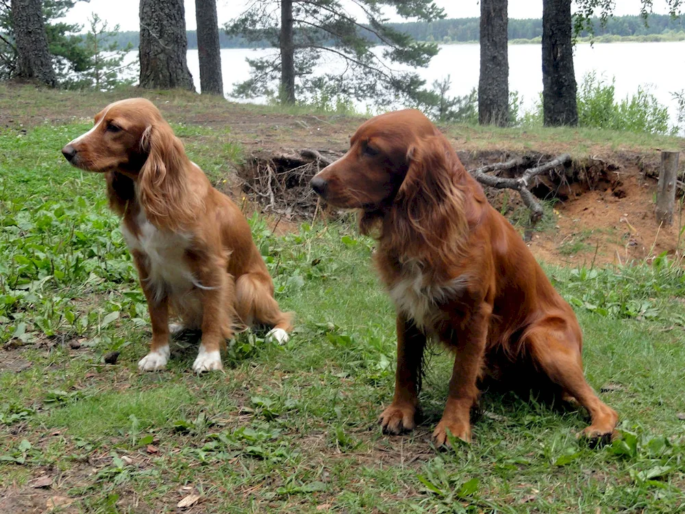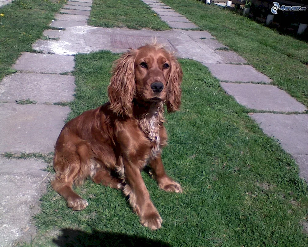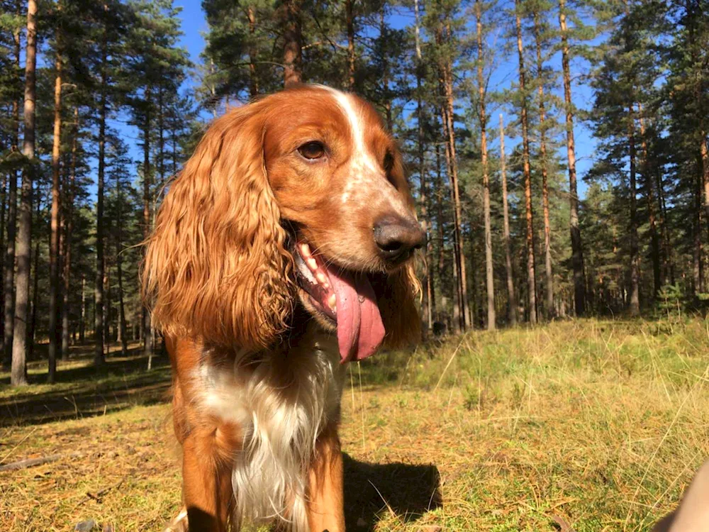 Russian spaniel red Photos of beautiful red Russian spaniels with their glossy coats and playful expressions, showcasing their elegant appearance and friendly nature. These images capture the essence of this unique breed, perfect for any dog lover looking for a charming companion.