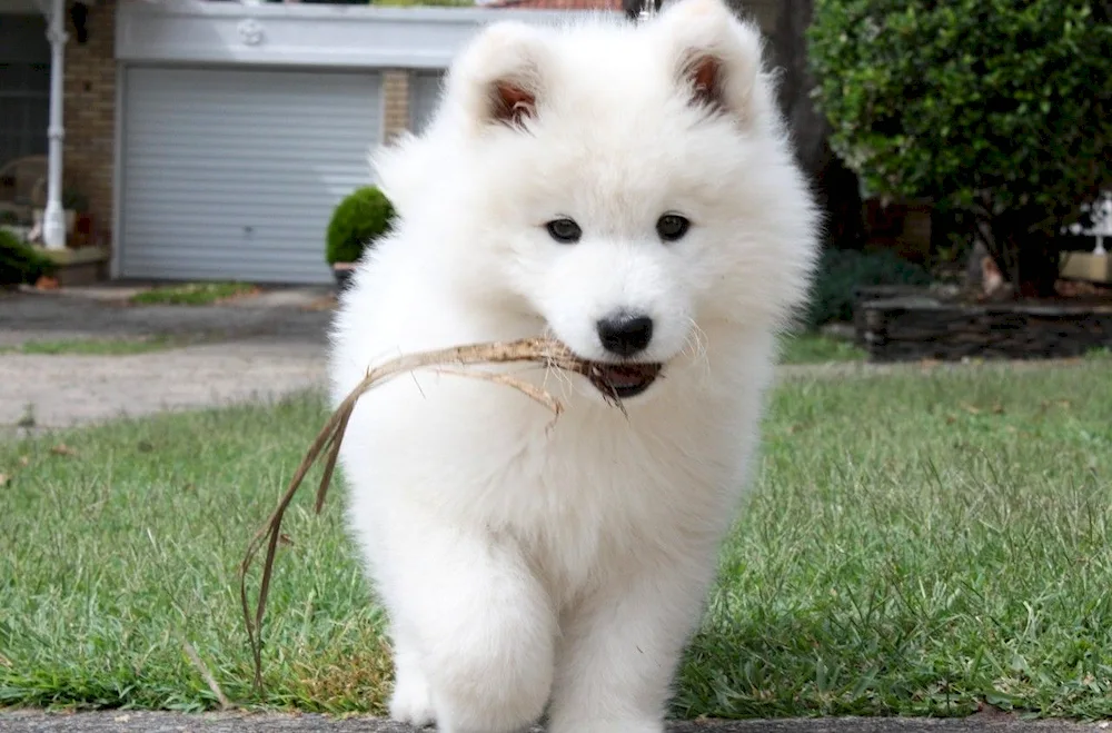 Check out these adorable images of a young Samoyed dog. You will love the fluffy white fur, playful attitude, and irresistible puppy eyes!