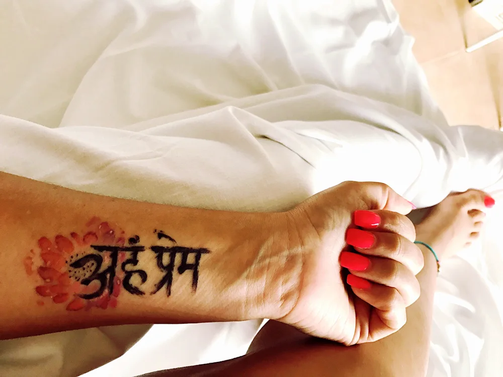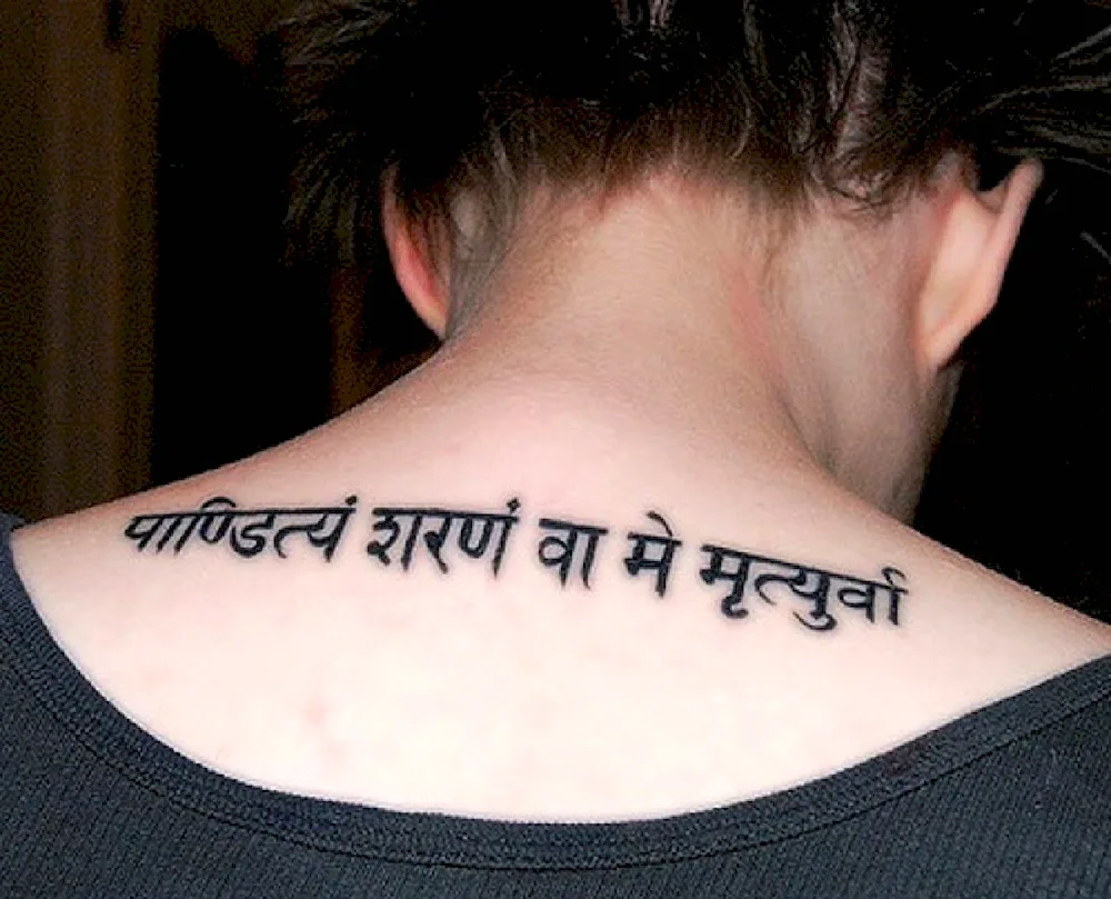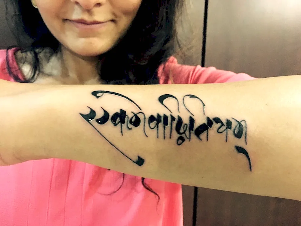 Sanskrit tattoo with translation Photos of beautiful Sanskrit tattoos with their English translations, perfect for those looking for meaningful and spiritual body art. Check out these stunning designs to find inspiration for your own Sanskrit tattoo.