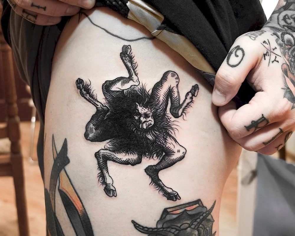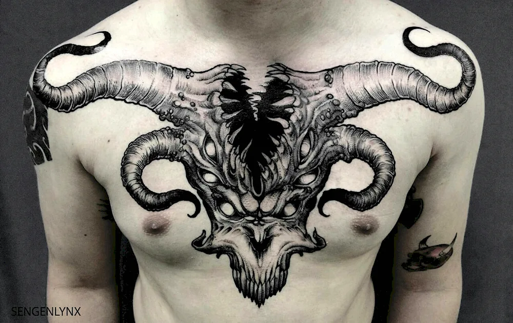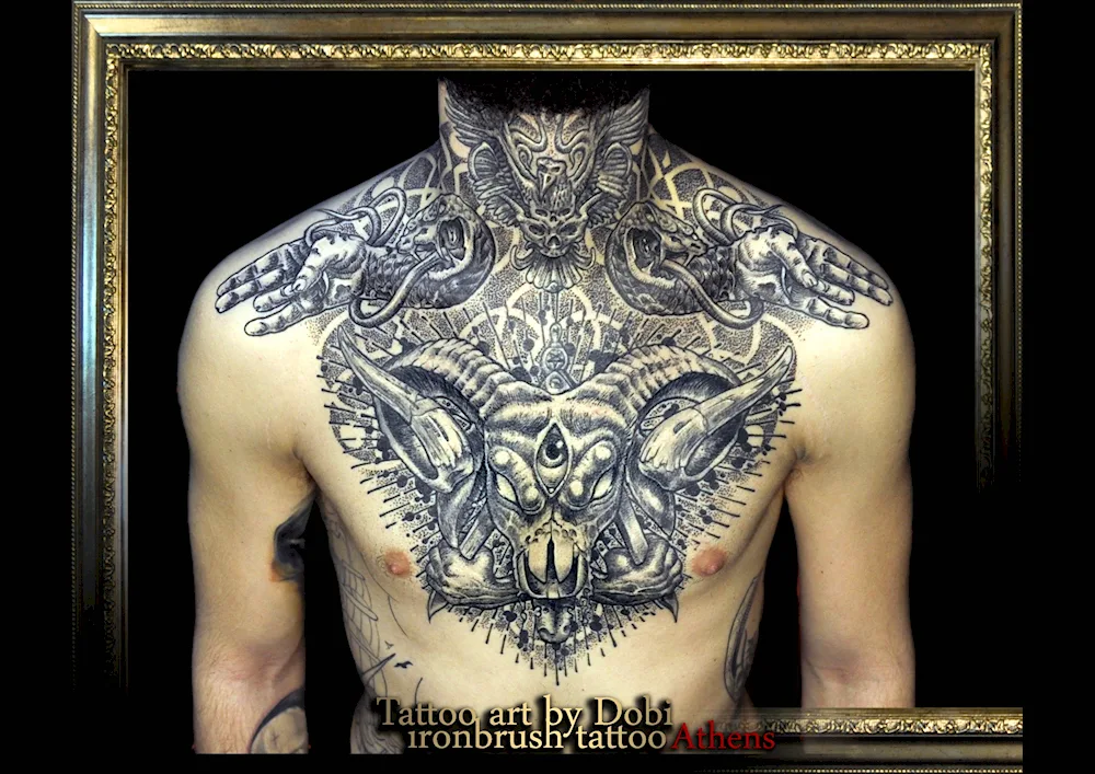 Satanic tattoos Images of sinister and dark tattoos depicting devilish symbols and demonic figures are showcased in this collection. The artwork is intricate and detailed, capturing the eerie and mysterious essence of the Satanic inspiration behind each design.
