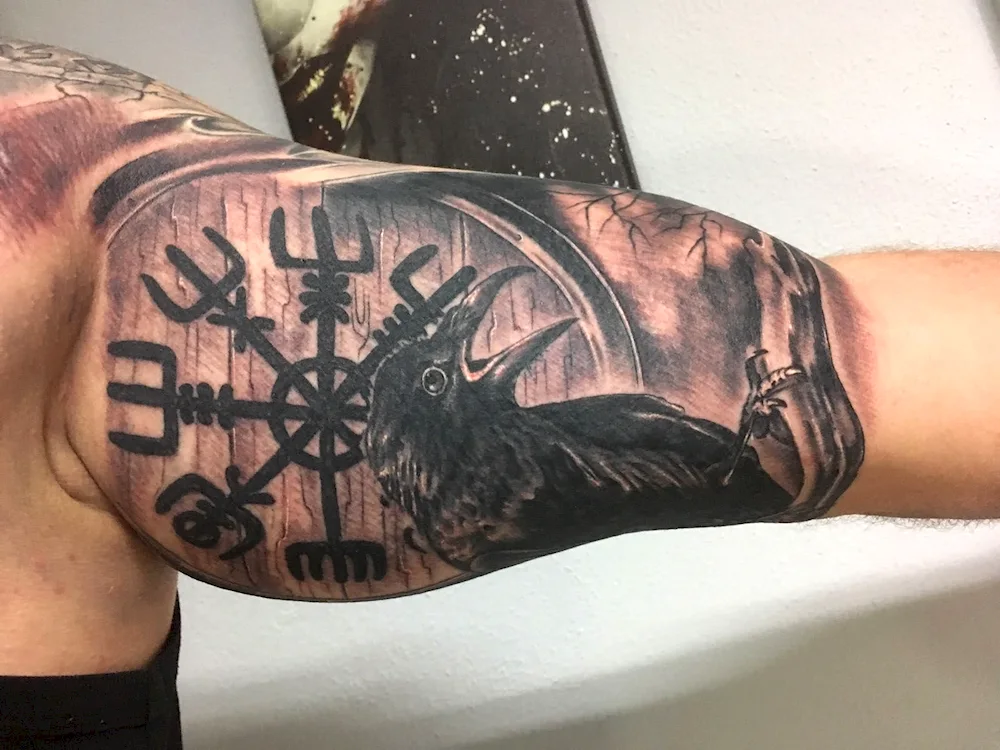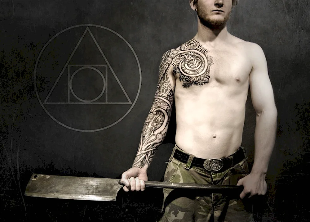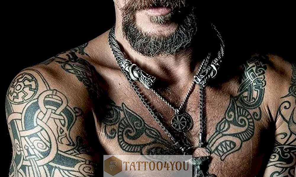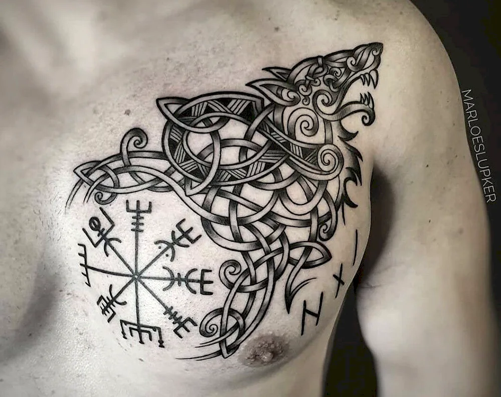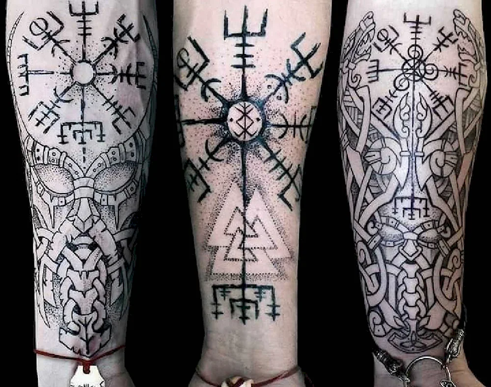 Scandinavian Tattoos For Men Examples of Nordic-inspired tattoos for guys include intricate Viking symbols, runic alphabet designs, and traditional Norse gods like Odin and Thor depicted in detailed artwork. These tattoos often feature bold black lines, geometric shapes, and elements of nature like trees and animals, making them both powerful and visually striking.